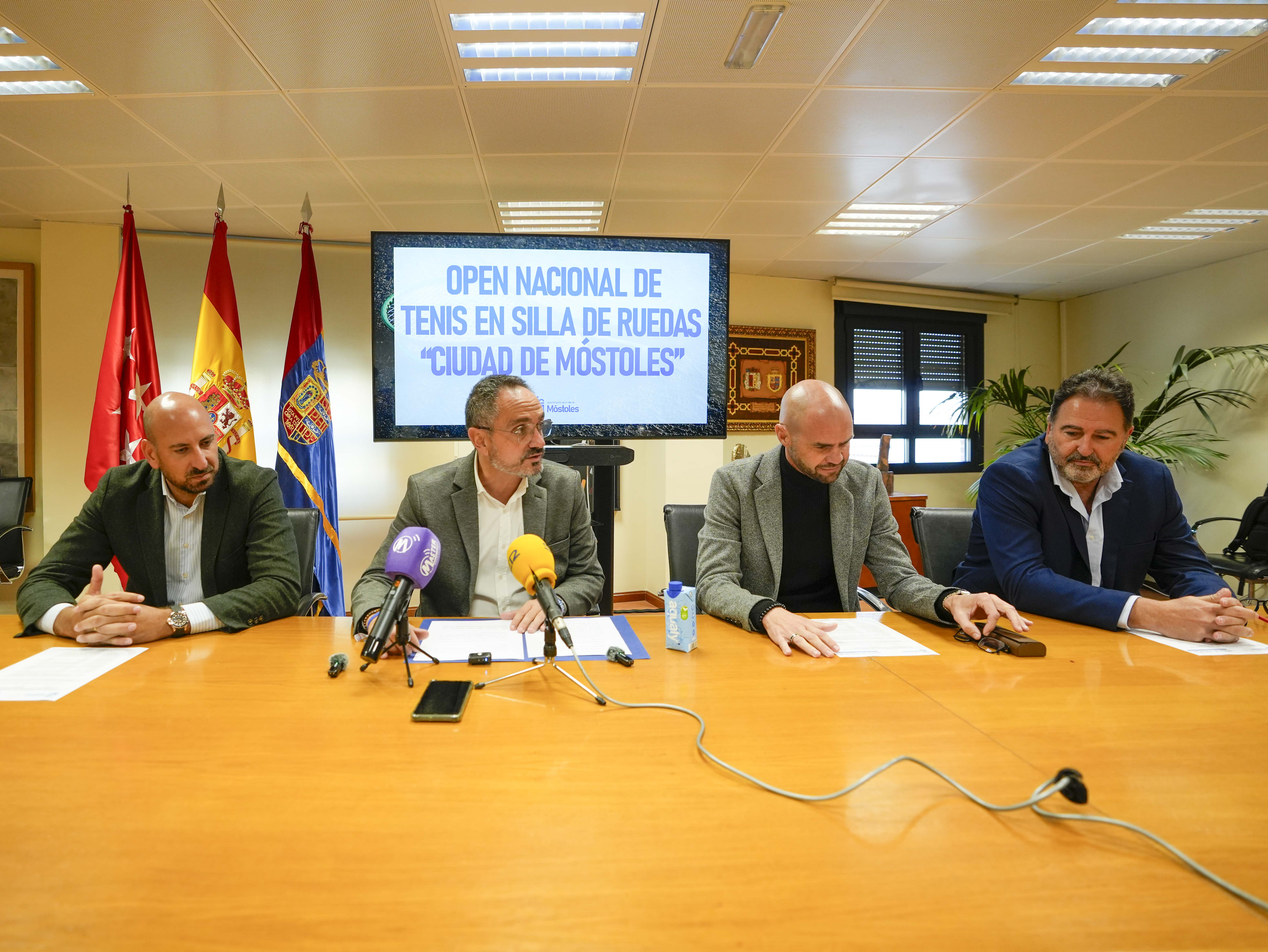 El alcalde de Móstoles, Manuel Bautista, ha presentado hoy el torneo ante los medios de comunicación acompañado del concejal de Deportes y Sanidad, Ángel Álvarez, el presidente de la Federación de Tenis de Madrid, Juan Luis Rascón, y el presidente de la Federación Madrileña de Deportes de Personas con Discapacidad Física, José Criado.
