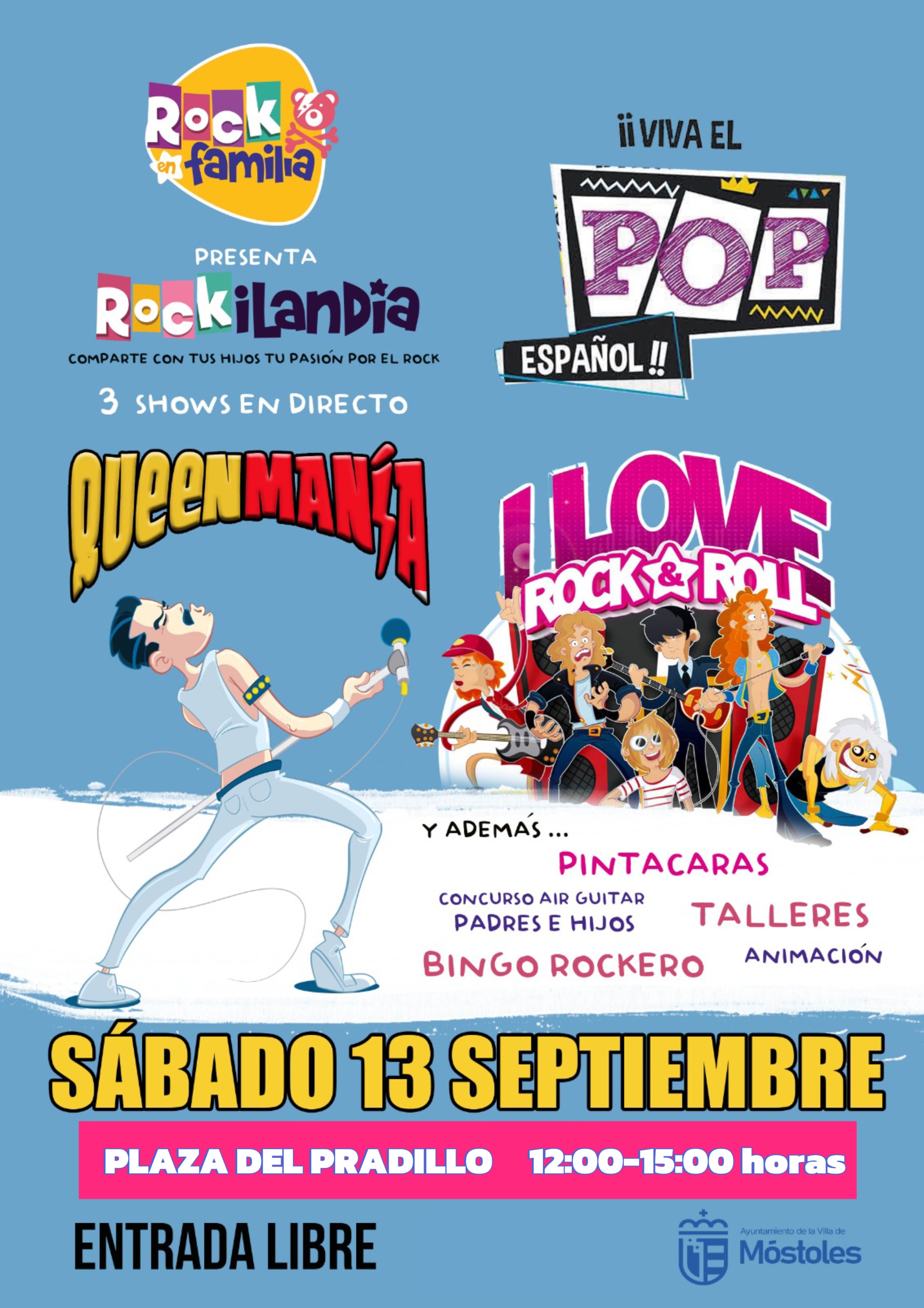 El sábado 13 de septiembre se celebrará la primera Feria de Día, con el espectáculo "Rock en Familia" y una pancetada popular. De 12:00 h a 15:00 h en Plaza del Pradillo, los niños podrán vivir un espectáculo de música en directo, al tiempo que descubren la historia y las anécdotas más divertidas de algunas de las bandas más importantes y relevantes de la historia del rock. Además, habrá pintacaras, concurso de Air Guitar, bingo rockero, talleres y animación. Y, desde las 12:30 h, la explanada de la plaza de toros será el punto de encuentro para la pancetada popular, en la que los vecinos podrán disfrutar de la mejor panceta, con la colaboración de la Federación de Peñas de Móstoles.