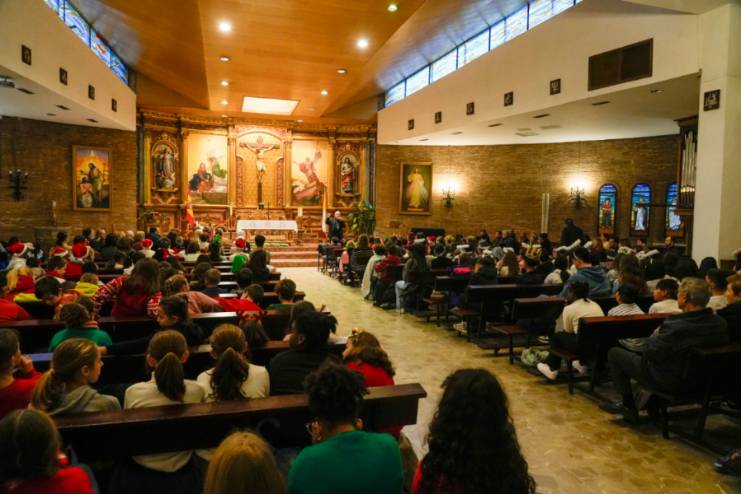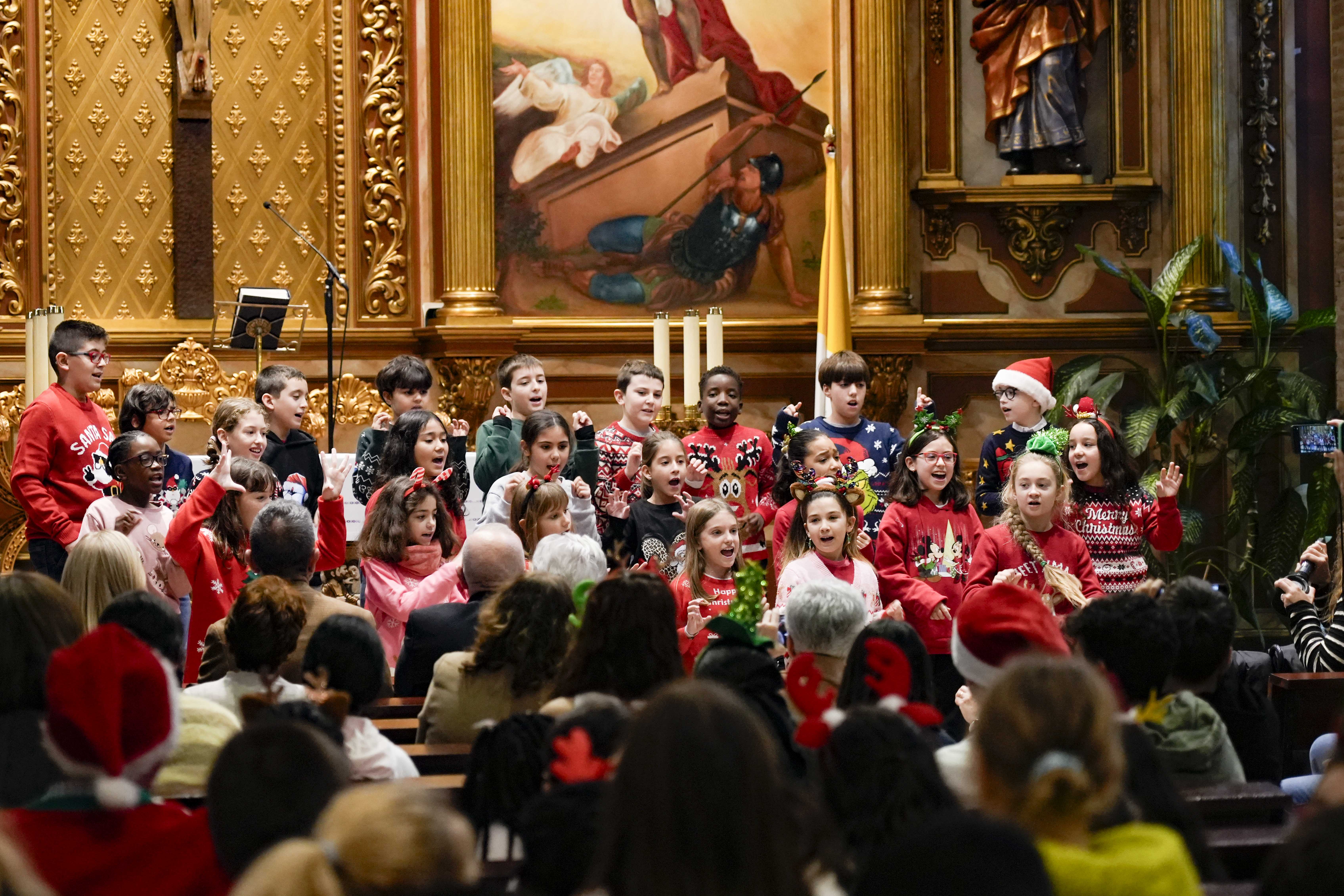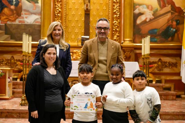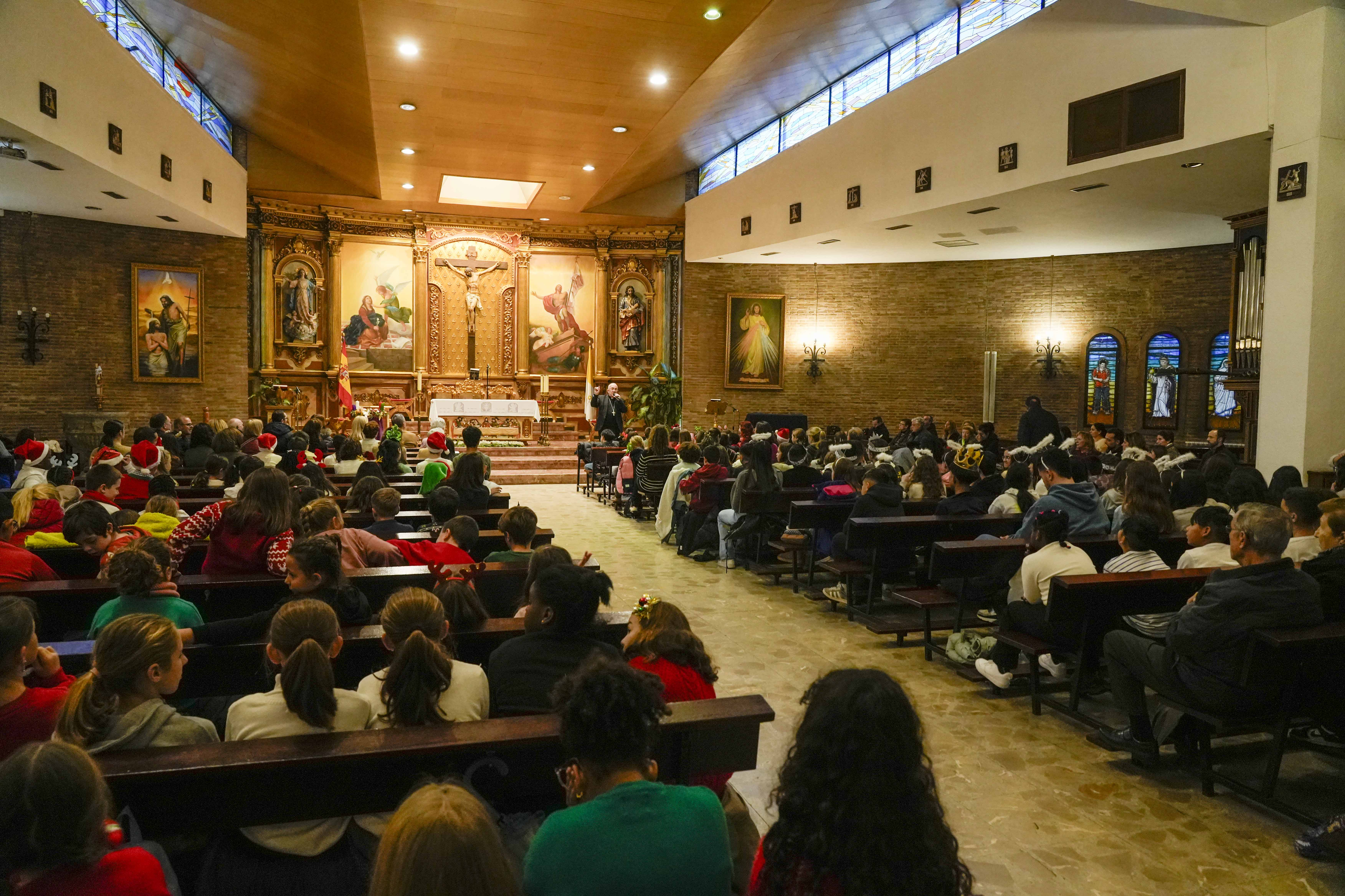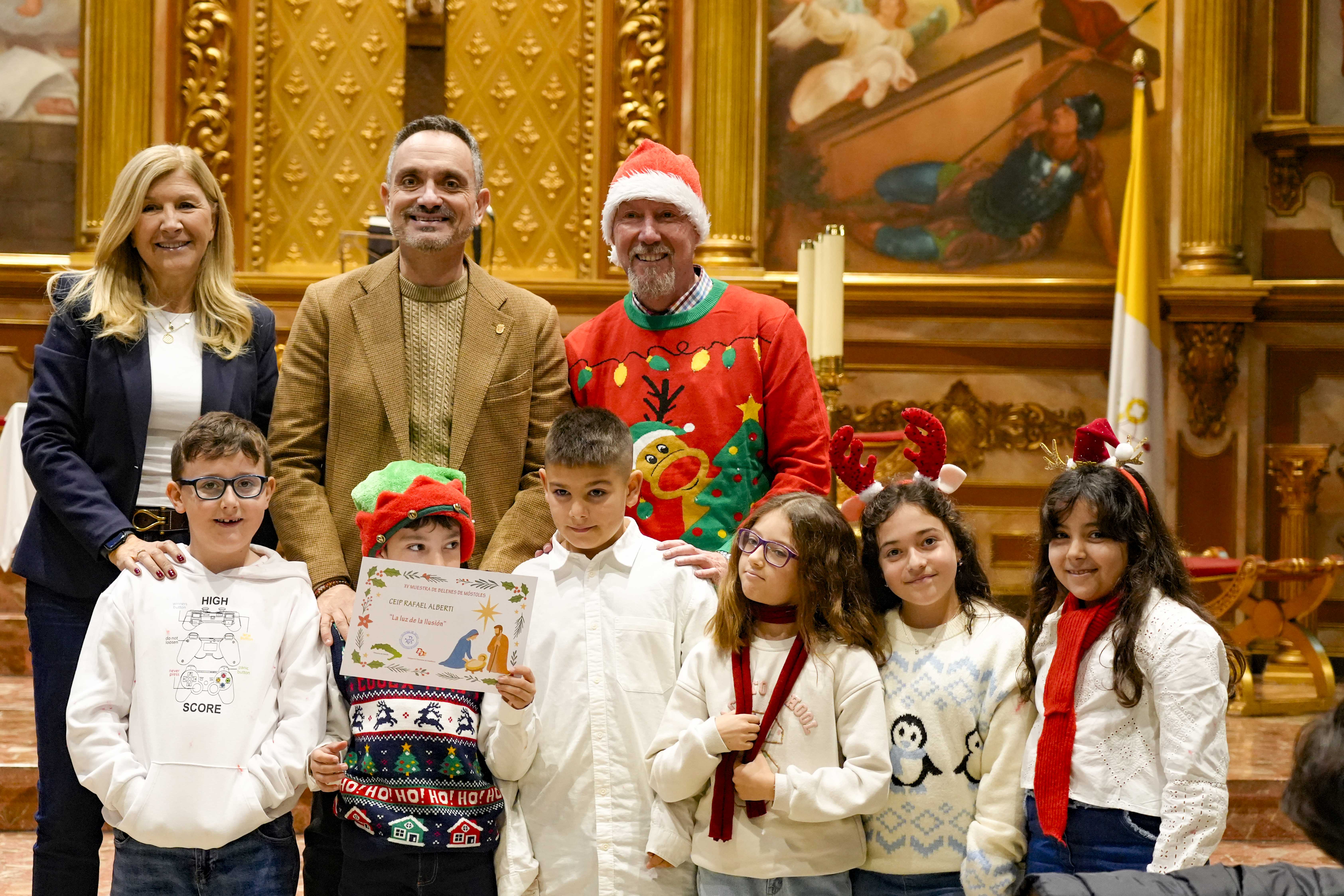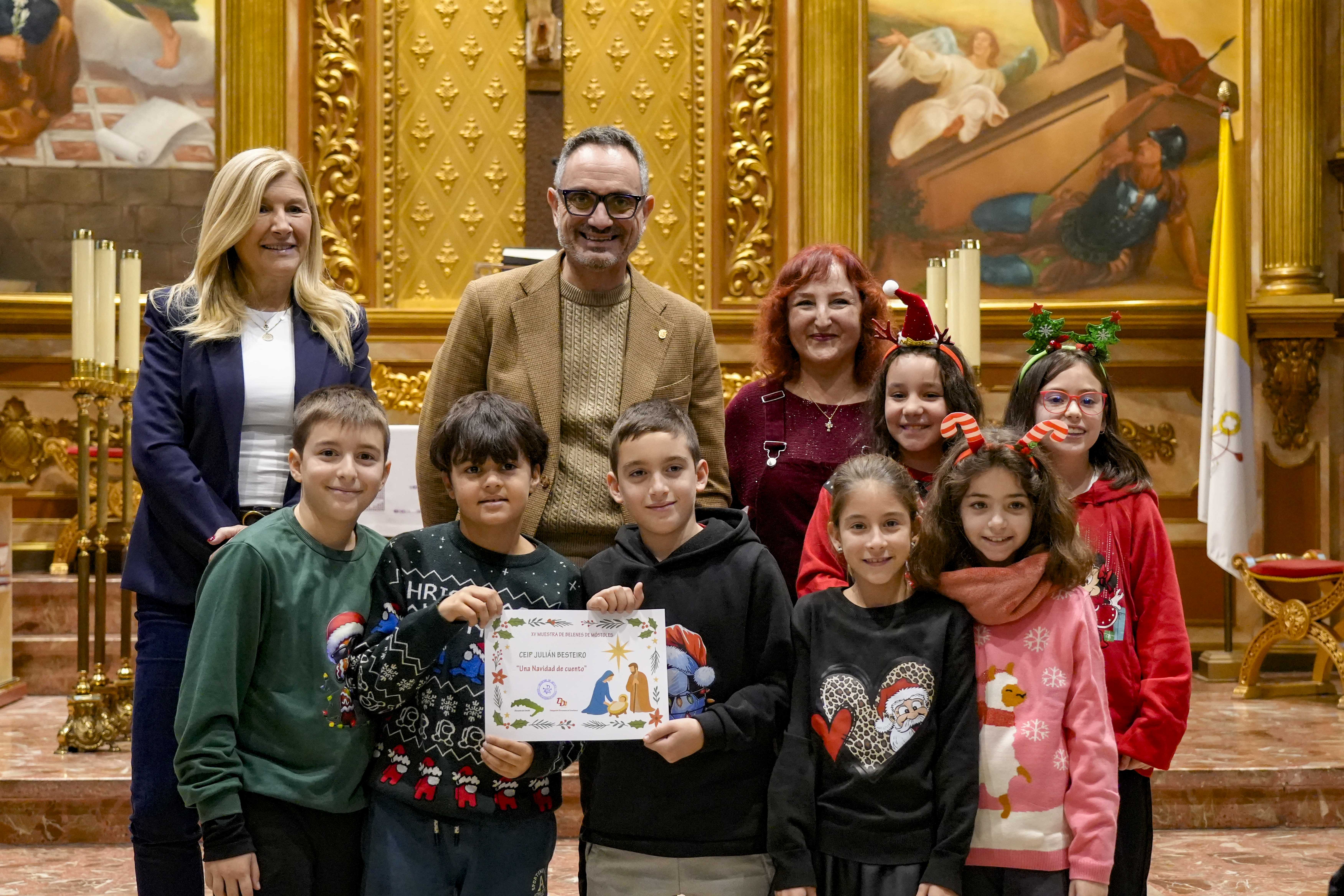 El acto de entrega de menciones se ha celebrado hoy, martes 16 de diciembre, en la Parroquia Nuestra Señora de la Asunción y ha contado con la presencia del alcalde de Móstoles, Manuel Bautista; la concejal de Educación y Festejos, Cristina Molina; el obispo auxiliar de la Diócesis de Getafe, José María Avendaño; el delegado de Enseñanza de la Diócesis de Getafe, Javier Segura Zariquiegui; junto a miembros de la Corporación Municipal y representantes de la comunidad educativa. También han asistido al acto más de 280 alumnos que han interpretado varios villancicos.