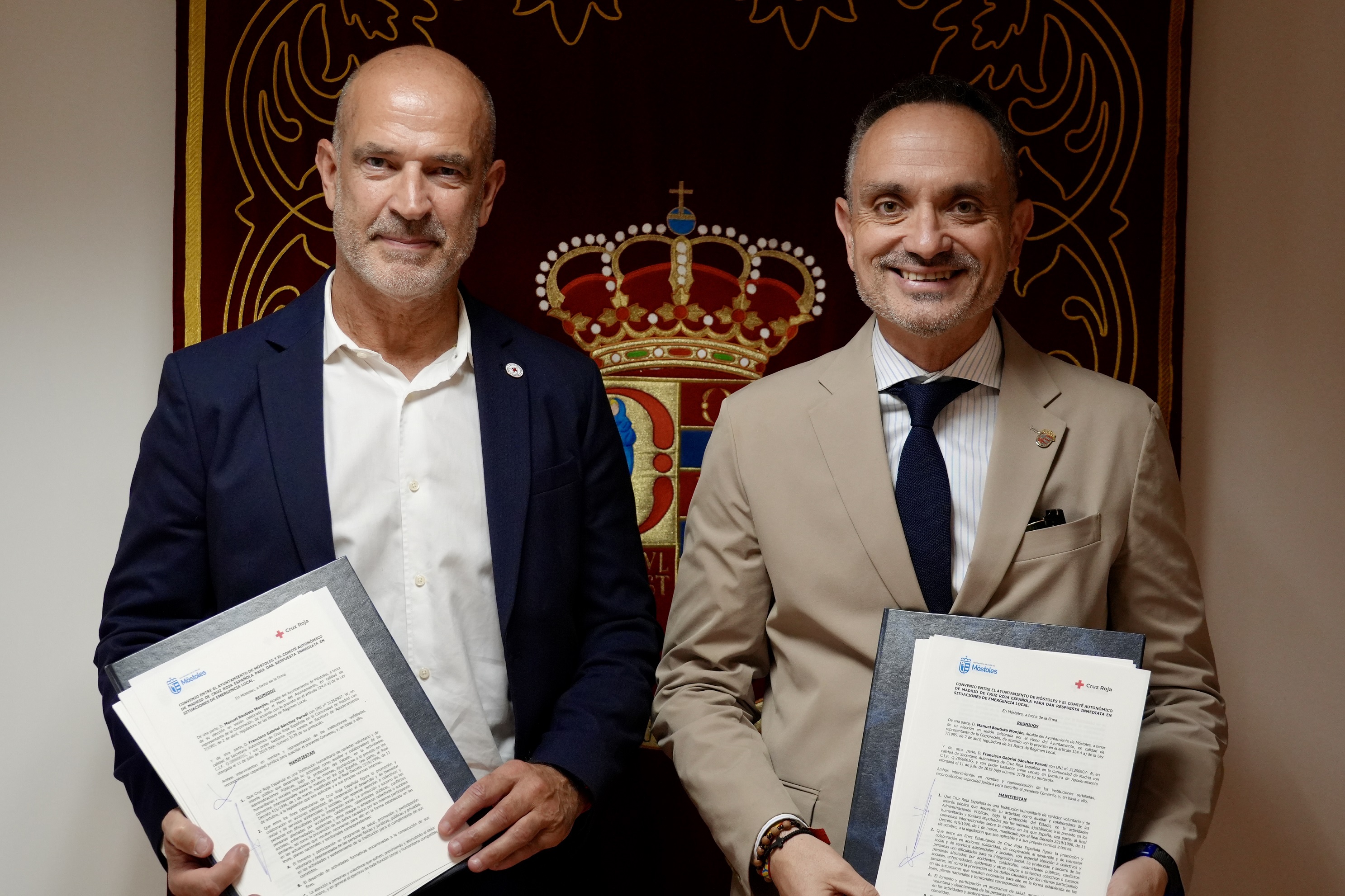 El alcalde de Móstoles, Manuel Bautista, ha procedido hoy a la firma del acuerdo junto al secretario autonómico de Cruz Roja Española en la Comunidad de Madrid, Francisco Gabriel Sánchez Parodi. En la firma han estado presentes también el primer teniente de alcalde y concejal de Seguridad, Emergencias y Medio Ambiente, Gabriel Monteserín; la concejal de Juventud, Familia, Igualdad y Cooperación, Marta Bastarreche; y el responsable territorial de Gestión Técnica, David Martín.