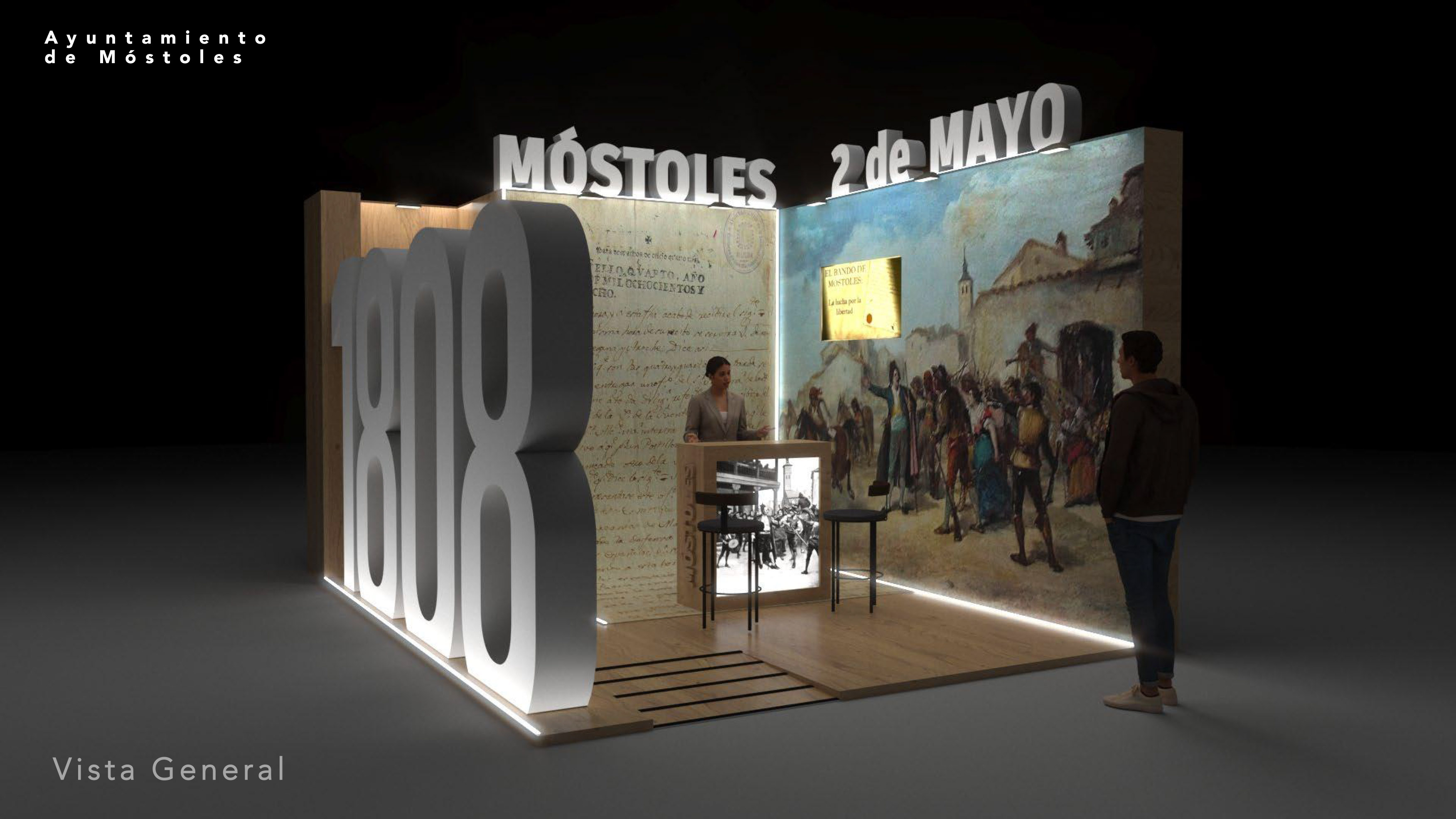El stand del Ayuntamiento de Móstoles permanecerá los cinco días que dura la Feria Internacional de Turismo para promocionar el turismo de la Villa de Móstoles. Se ubicará en el pabellón 9, A-41, y cuenta con unas dimensiones de 5,50 metros x 4 metros. En el panel izquierdo se pueden ver los números 1808 en tamaño gigante, de 2,45 metros de alto. En el panel central, aparece serigrafiado una copia del bando de Independencia ante los franceses de los alcaldes de Móstoles, y, en el panel derecho, una reproducción en lona del lienzo "El alcalde de Móstoles declara la patria en peligro", de Antonio Pérez Rubio, y una televisión encastrada en la que se proyectarán imágenes de la ciudad.
