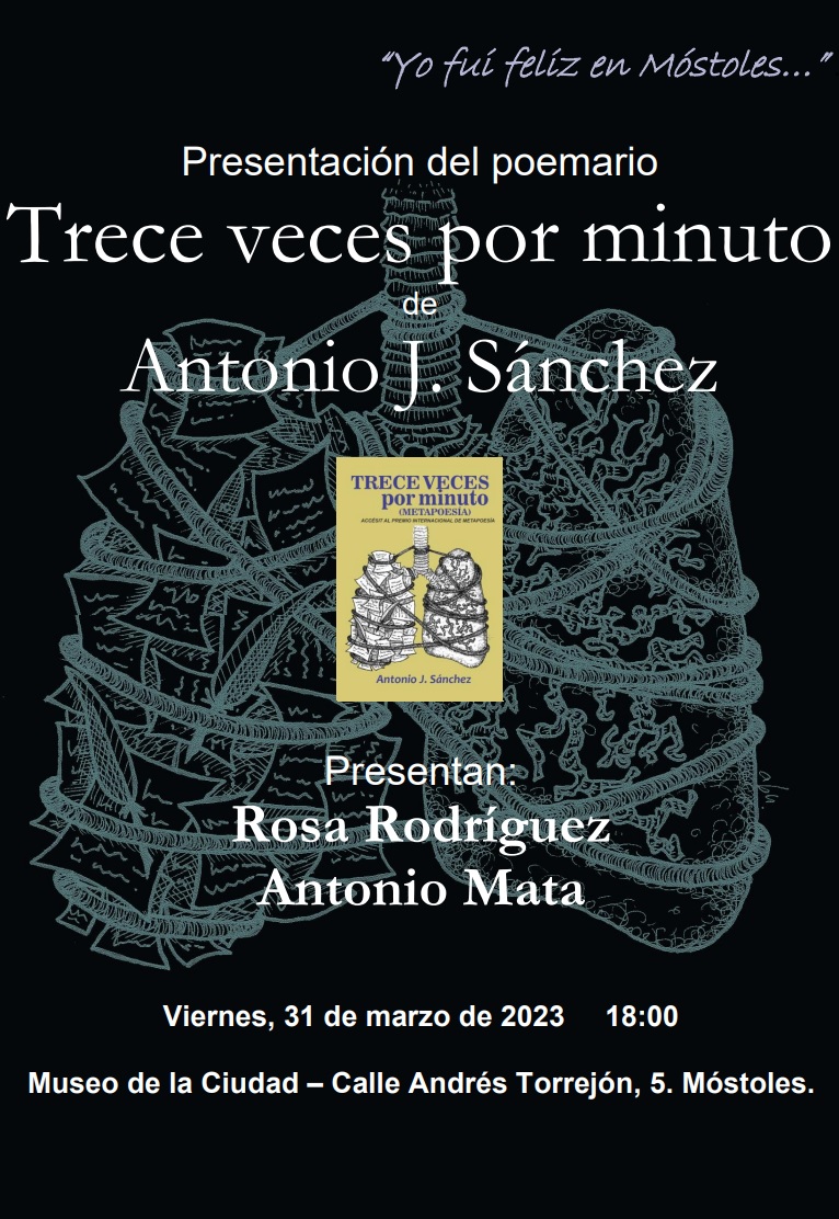 El poeta y vecino de Móstoles Antonio J. Sánchez presentará el viernes 31 a las 18:30 h en el Museo de la Ciudad su libro "Tres veces por minuto", en unacto promovido por la Asociación Española de Amigos de la Poesía (ASEAPO).