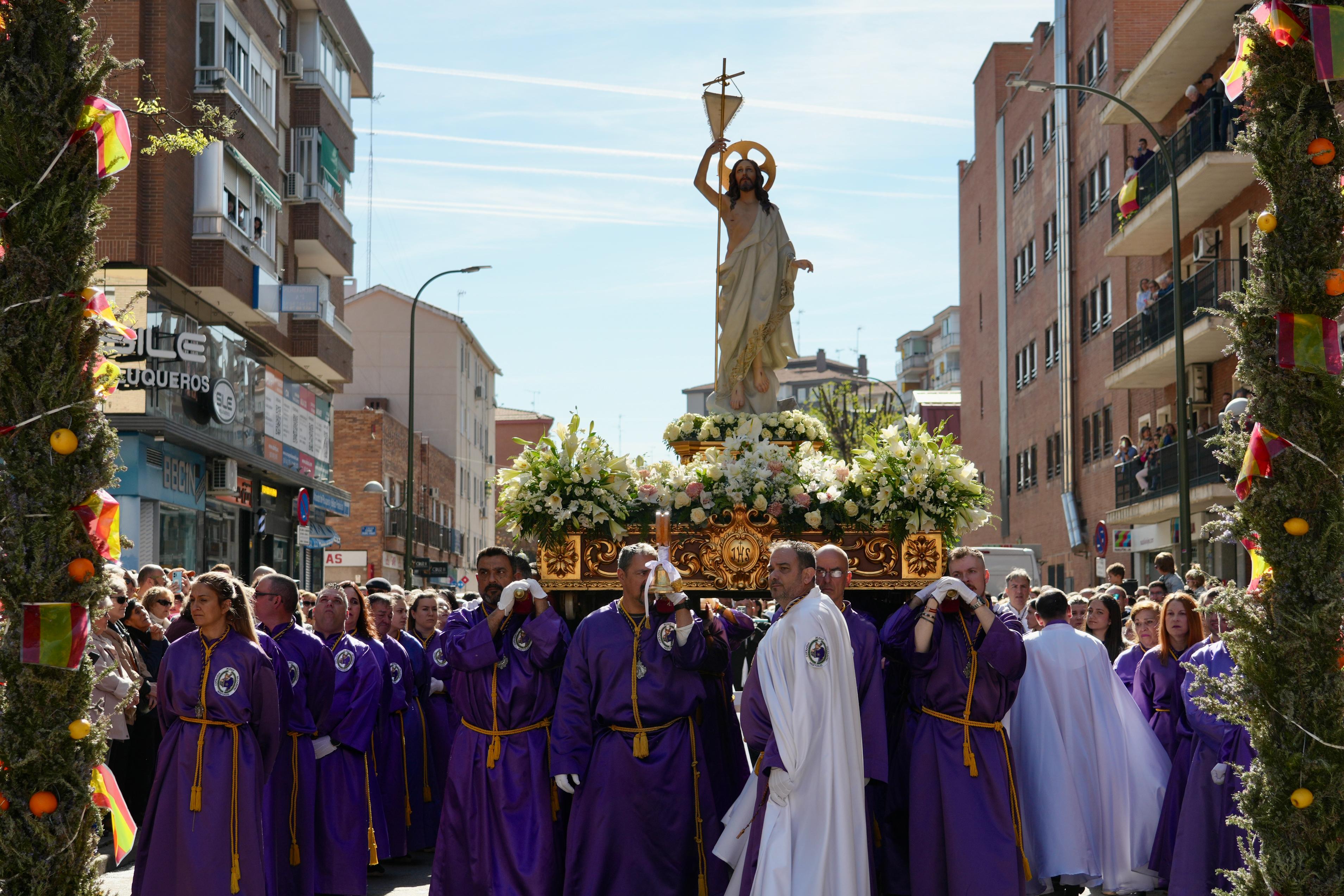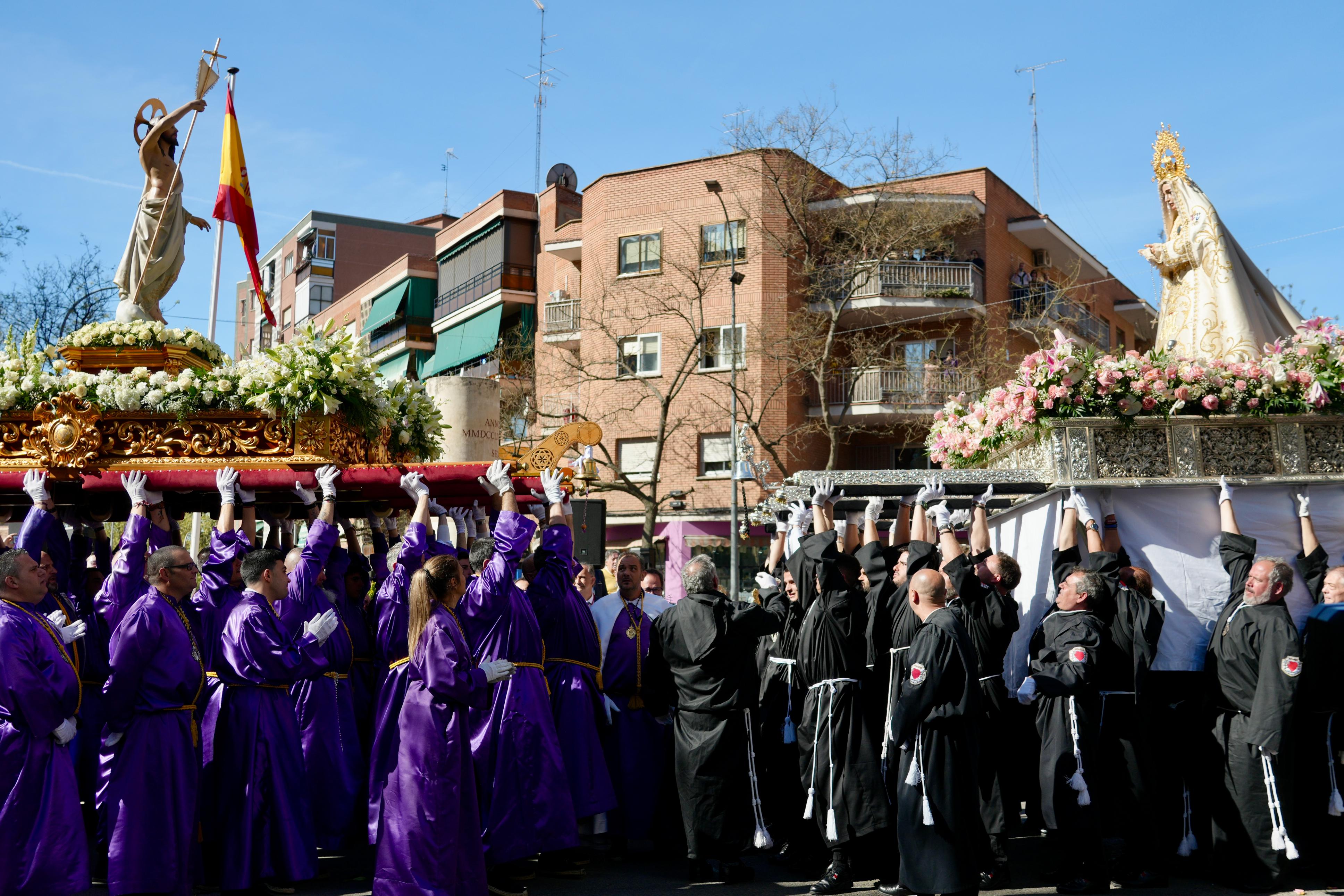 - Miles de personas asisten a la Semana Santa mostoleña, con medio centenar de costaleros que portaron las imágenes del Cristo Resucitado y Nuestra Señora de la Soledad en la Procesión del Encuentro, de Interés Turístico Regional.