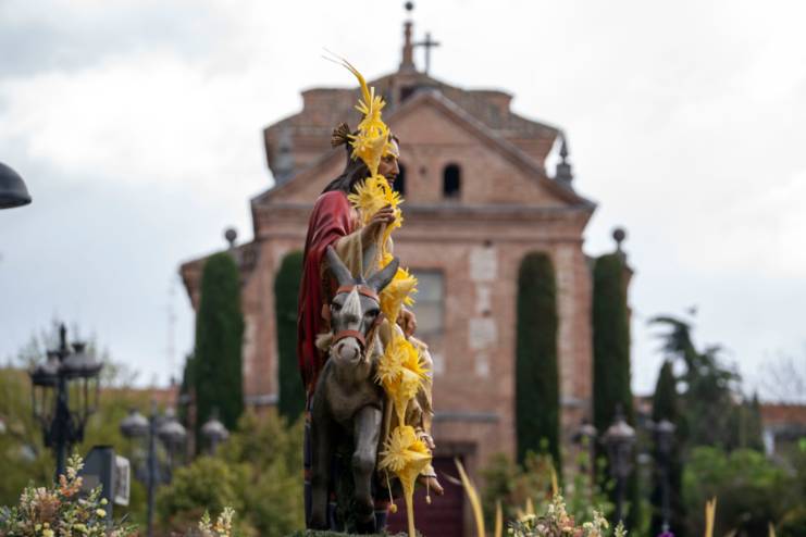El domingo 13 de abril, Domingo de Ramos, se celebró la tradicional Bendición de ramos y se sacó la imagen La Borriquilla en procesión, a las 10:00 h, desde la Ermita de Nuestra Señora de los Santos, dando inicio a la Semana Santa. Tras recorrer las principales calles aledañas, se ofició la Santa Misa en la parroquia Nuestra Señora de la Asunción. Durante el recorrido la procesión contó con el acompañamiento musical de la Agrupación Musical Nuestro Padre Jesús Nazareno.