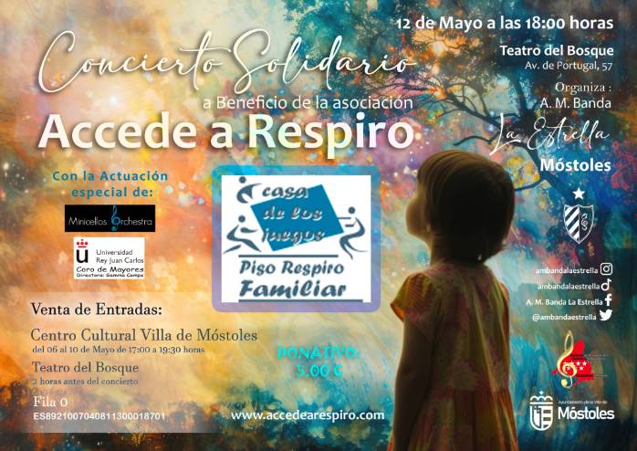 • El Ayuntamiento de Móstoles ofrecerá en el Teatro del Bosque un concierto solidario cuyos beneficios irán destinados a la Asociación Accede a Respiro, para personas con Trastorno de Espectro Autista (TEA), el próximo 12 de mayo, a las 18:00 h.