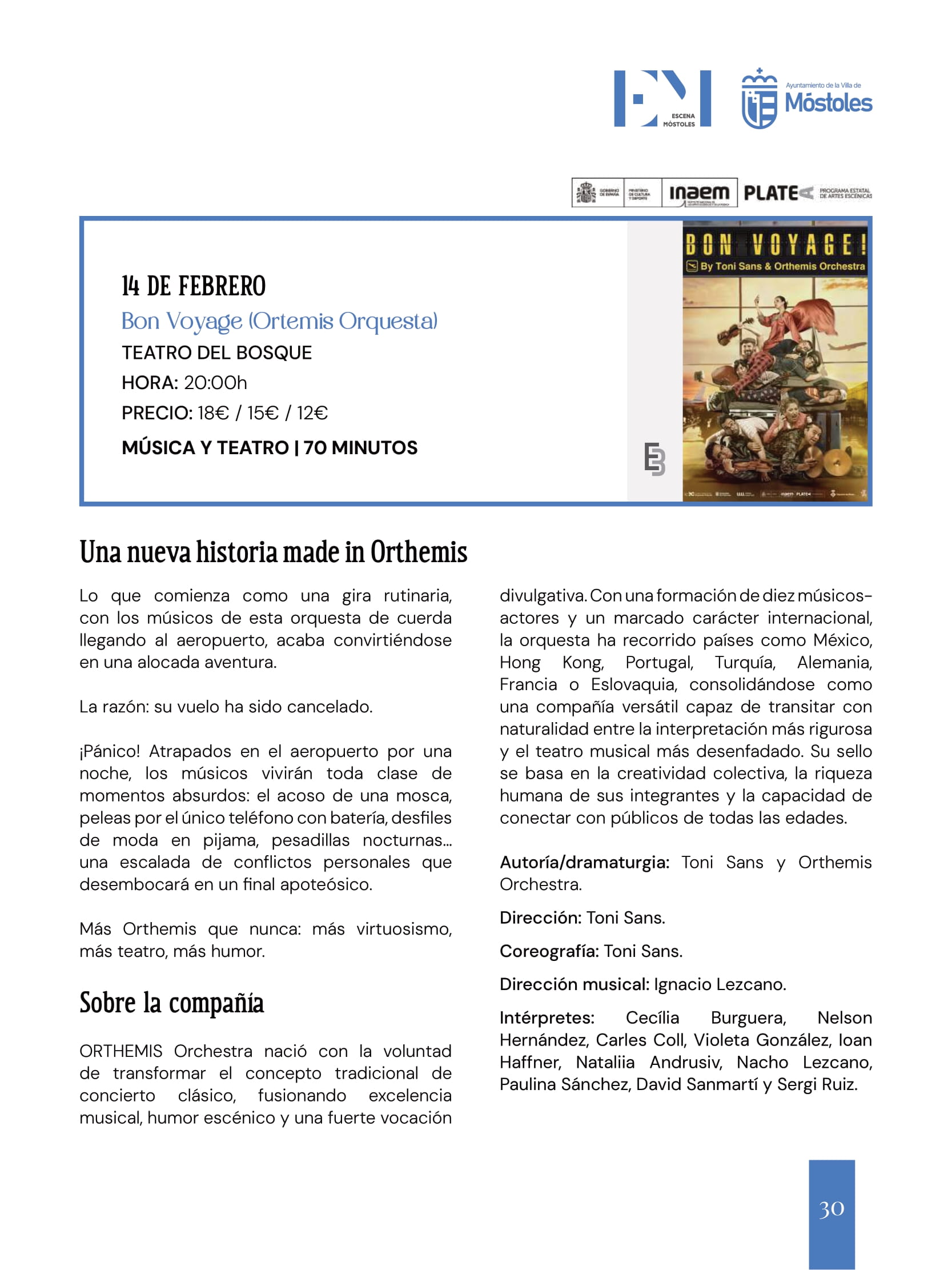 "Bon voyage", musical a cargo de Toni Sans y Orthemis Orchestra, en el Teatro del Bosque a las 20:00 horas. Precio: 18, 15 y 12 €. 70 minutos. Para todos los públicos. Venta de entradas online o en taquillas de los teatros municipales.