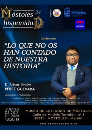 El jueves 3 de octubre, a las 18:30 h, el abogado e historiador, César Simón Pérez Guevara, ofrecerá una interesante conferencia que versa sobre la Hispanidad, "Lo que no os han contado de nuestra historia".