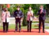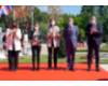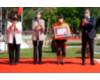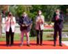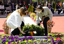 Tras la entrega de premios y reconocimientos, la Alcaldesa, Noelia Posse, y la Ministra, Reyes Maroto, han depositado una última corona de laurel en la placa en honor a las víctimas del coronavirus como homenaje a todos los héroes de 1808 y de la COVID-19.