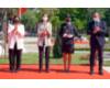 Una salva de fusilaría y el himno de España han roto el minuto de silencio por todos los fallecidos durante la pandemia con el que ha finalizado el acto en el que también han colaborado alumnos del Conservatorio Rodolfo Halffter.