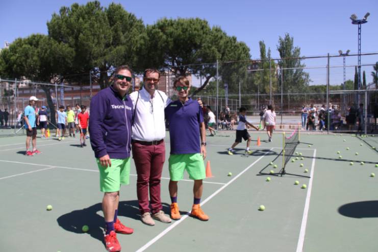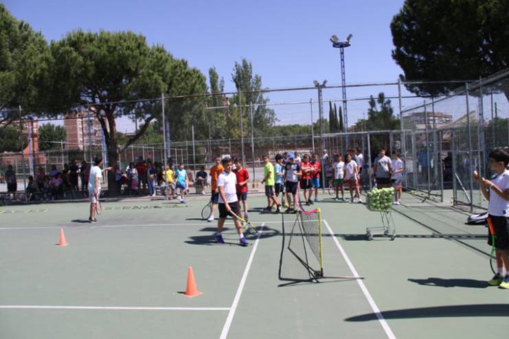 Imagen en alta resolución. Este enlace se abrirá mediante lightbox, puede haber un cambio de contextoGran éxito del Día de la Raqueta de Móstoles 2019 que se celebró el pasado sábado 8 de junio en el Polideportivo Municipal de Villafontana con la organización del Club Móstoles Tenis y la colaboración de la Concejalía de Deportes de Mostoles y Federacion de Tenis de Madrid. Se contó con la participación de más de 150 participantes. Se hizo el Clinic de tenis enseñando el golpe de derecha, revés, volea de derecha y volea de revés y a continuación se dieron todos los regalos a los participantes, para acabar con los ganadores del saque más rápido.