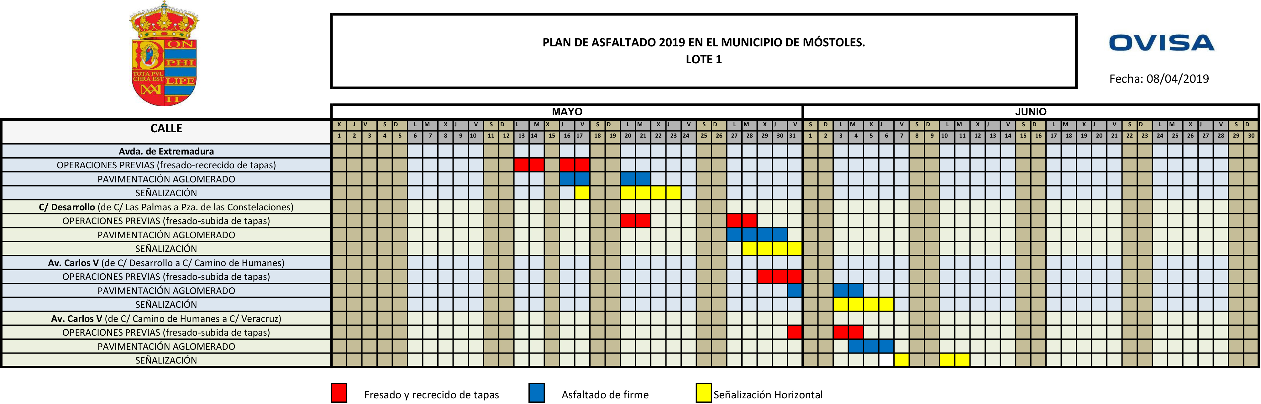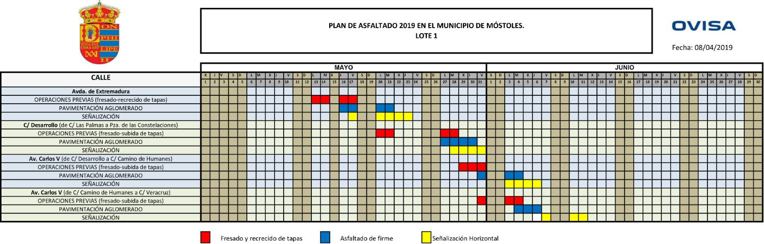 Las calles que llevarán este tipo de asfaltado serán: Avenida De Extremadura con una superficie aproximada de 23.000 m2; Avenida Alcalde de Móstoles con una superficie aproximada de 15.500 m2 y la Avenida de Portugal en dos tramos con una superficie aproximada de 15.500 m2