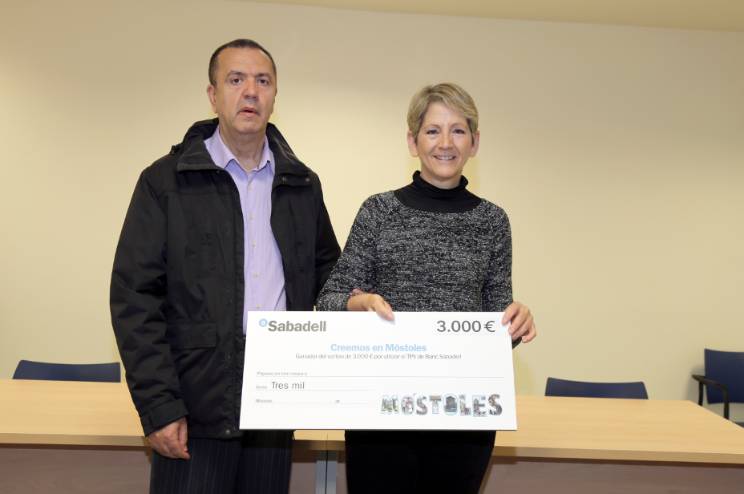 El ganador del sorteo de la campaña "Creemos en Móstoles", promovida por el Banco Sabadell en colaboración con el Ayuntamiento de Móstoles, a través de EMPESA, y la Federación de Comerciantes de Móstoles, ha recibido esta mañana su premio consistente en un cheque de 3.000 euros.