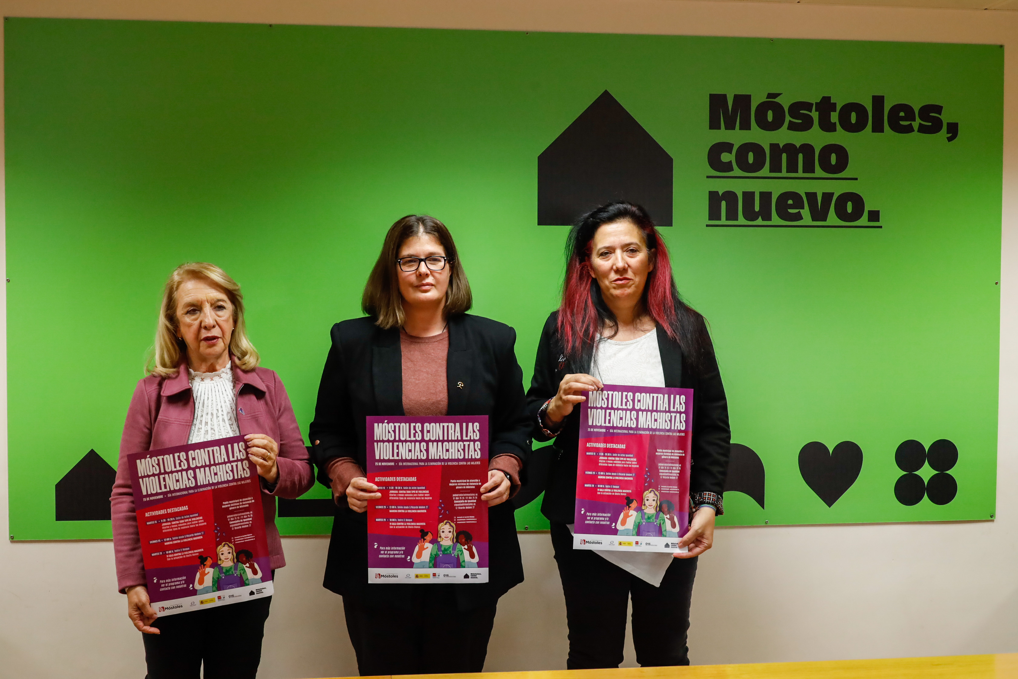 En una semana marcada por el asesinato de una mujer y su hija, Irina y Mariya, en un nuevo caso de violencia machista, esta vez en Móstoles, la Alcaldesa Noelia Posse, acompañada de la Concejala de Igualdad, Lola Triviño, y la Portavoz de Podemos, Mónica Monterreal, ha presentado hoy la programación elaborada con motivo del Día Internacional de la Eliminación de la Violencia contra las Mujeres. El objetivo: prevenir y concienciar sobre la violencia contra la mujer, sea del tipo que sea.