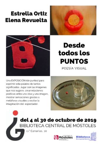 Comienza la exposición "DESDE TODOS LOS PUNTOS. POESÍA VISUAL", de Estrella OrtIz y Elena Revuelta. En la Sala de Exposiciones de la Biblioteca Central del 4 al 30 de octubre de 2019. Esta exposición se encuentra dentro del proyecto "La Ruta de la palabra"