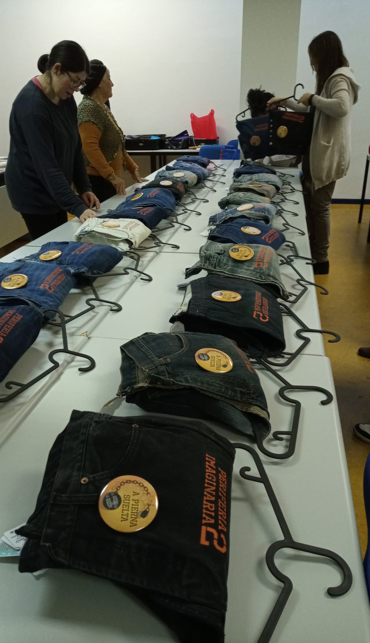 PERIFERIA IMAGINARIA Nº2 es físicamente una pernera de pantalón, realizada con pantalones en desuso del propio equipo de trabajo de la revista, cosida y serigrafiada para ser convertirla en "portada" y "bolso" contenedor de las páginas o piezas del número, que cuenta con una tirada de 30 ejemplares.