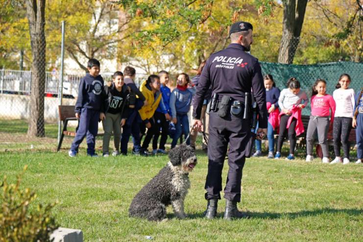 Agentes caninos de la Policía Local enseñan sus habilidades a alumnos de primaria de Móstoles