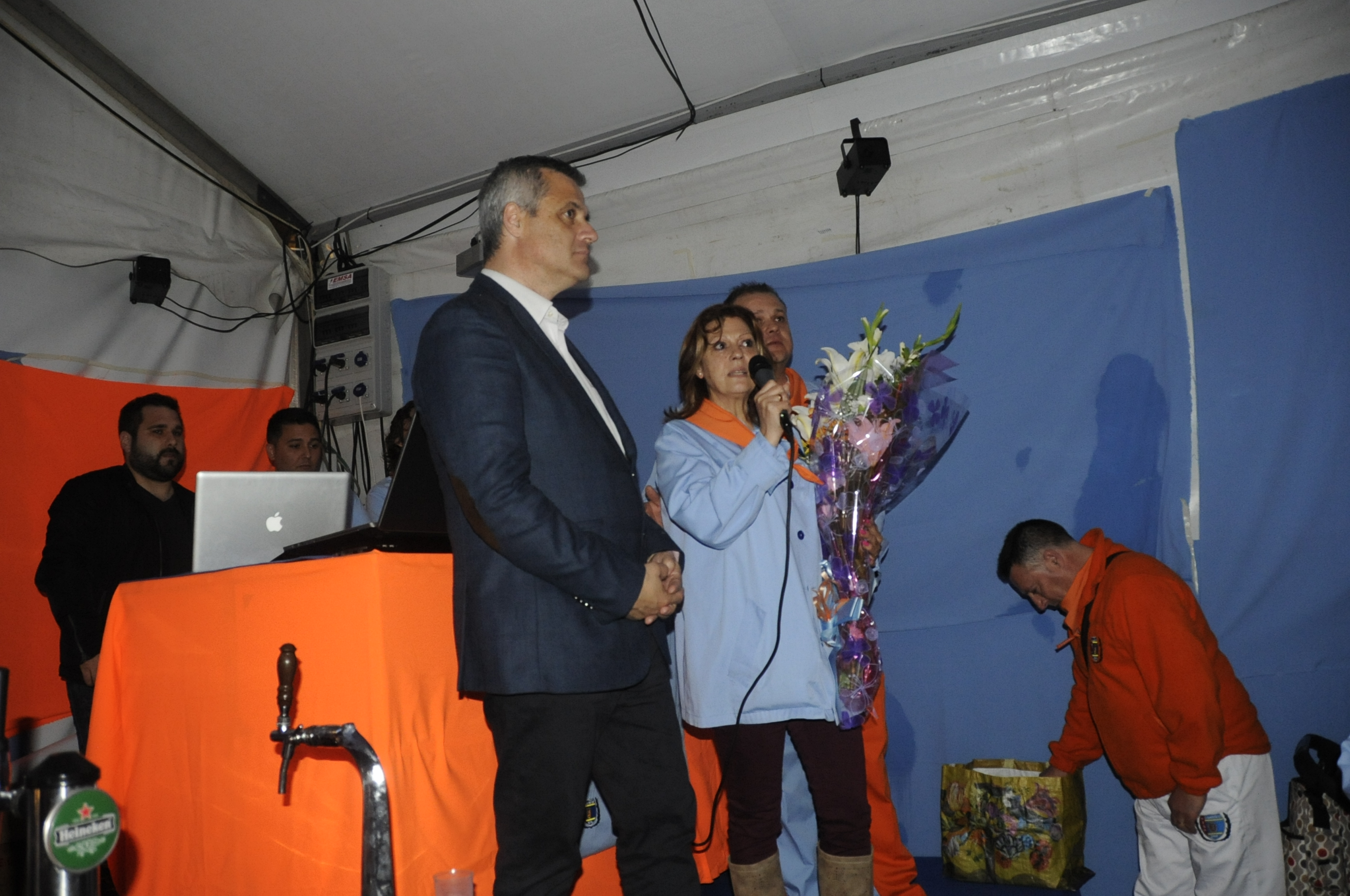 La edil de Medio Ambiente, Servicios Generales y Festejos, Noelia Posse, fue la encargada de dar el premio al socio Tomás Muñoz, en reconocimiento a sus años de dedicación en la Peña Los Lugareños. El resto de los premiados fueron David Zamorano, presidente de la Federación de peñas de Móstoles, La Marisquería Moreno, y el socio de Los Lugareños Alberto Gómez.