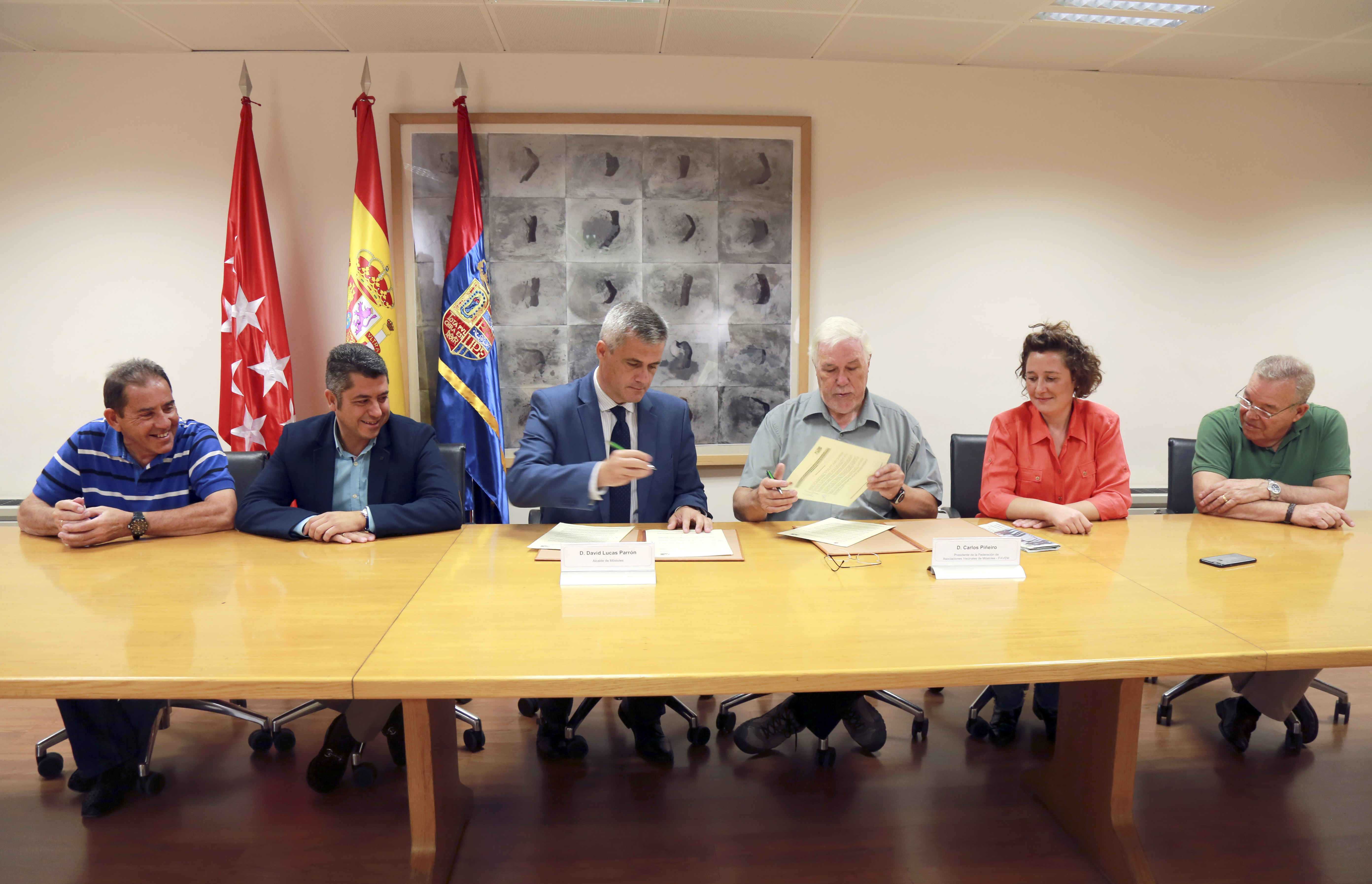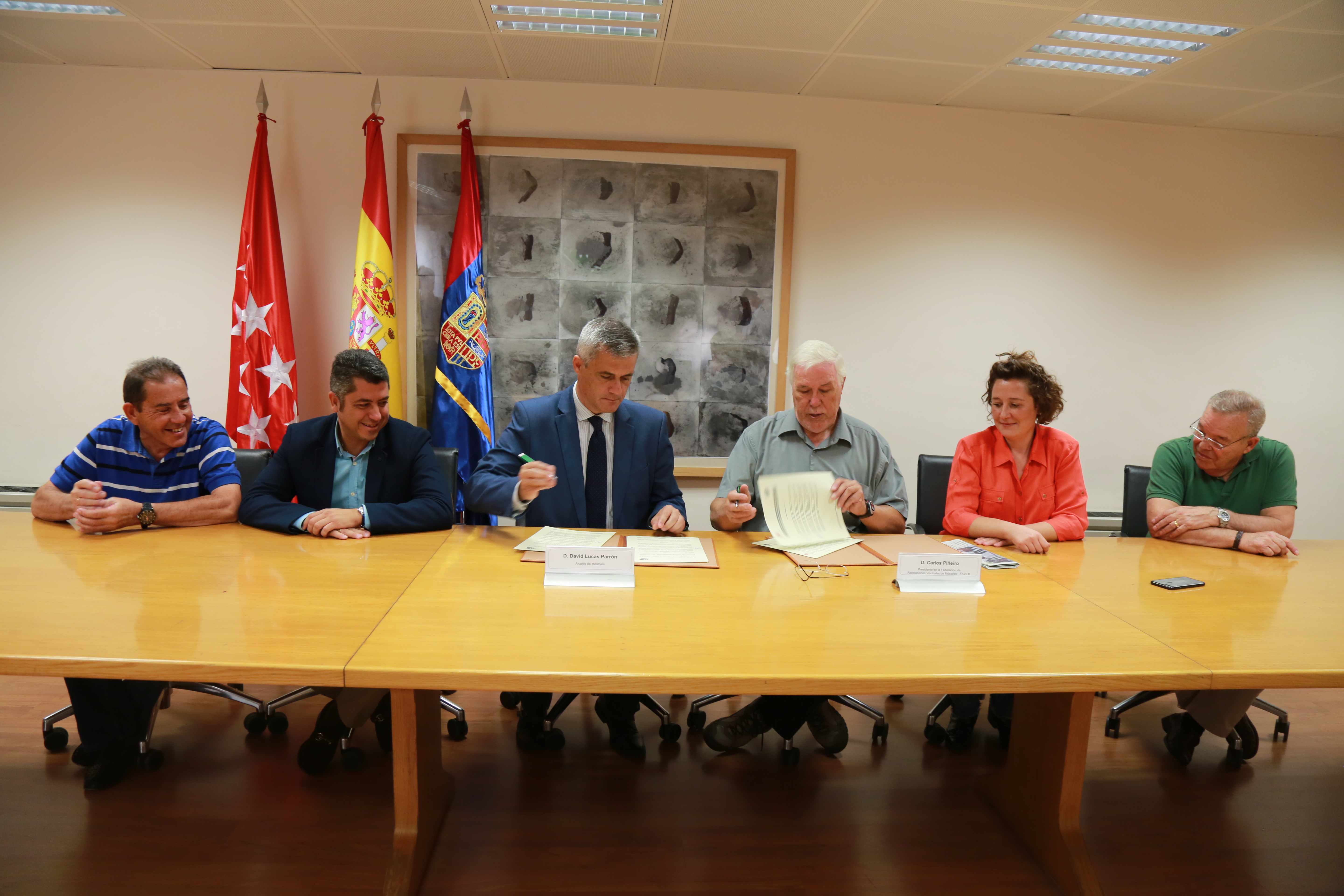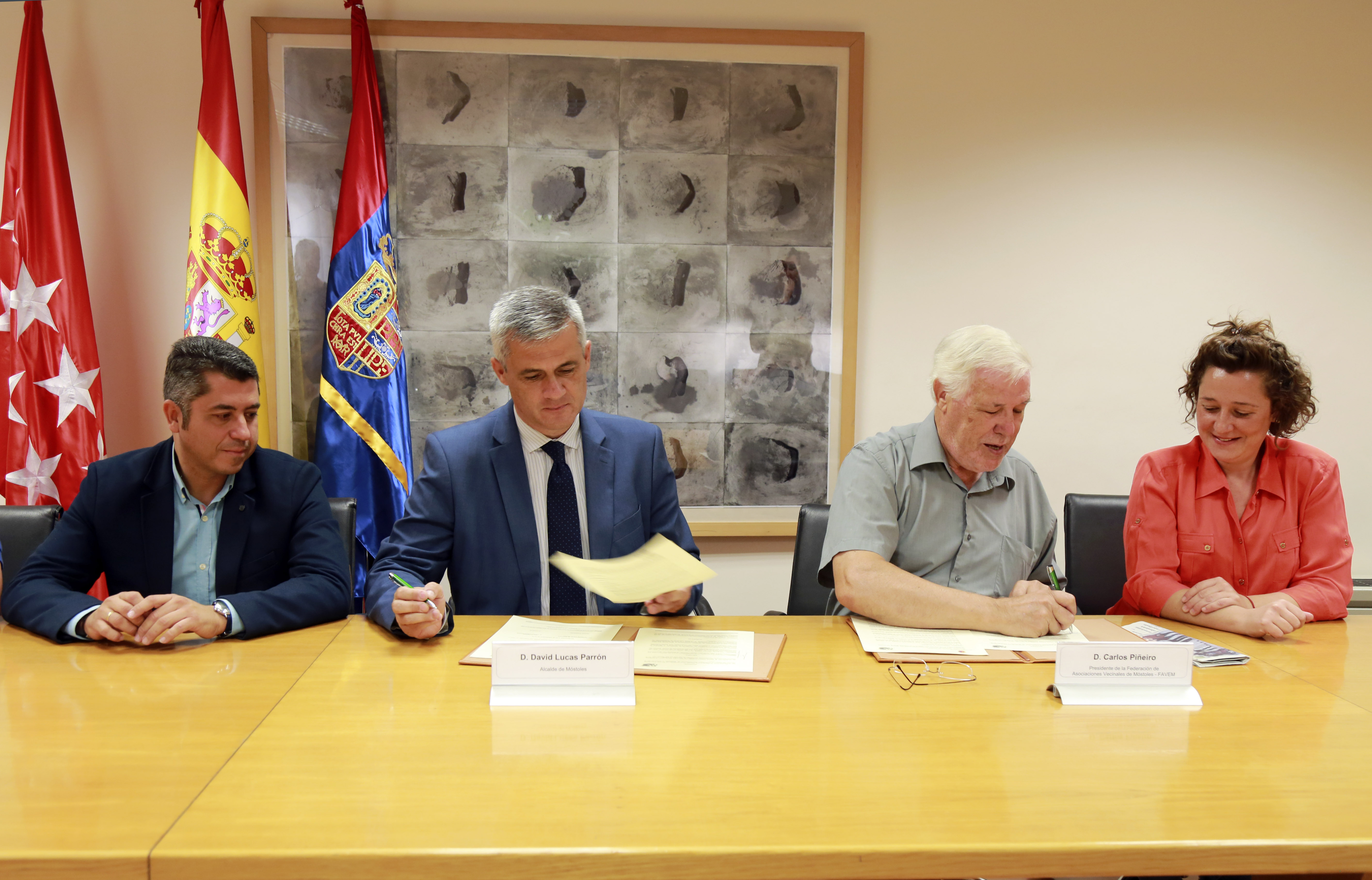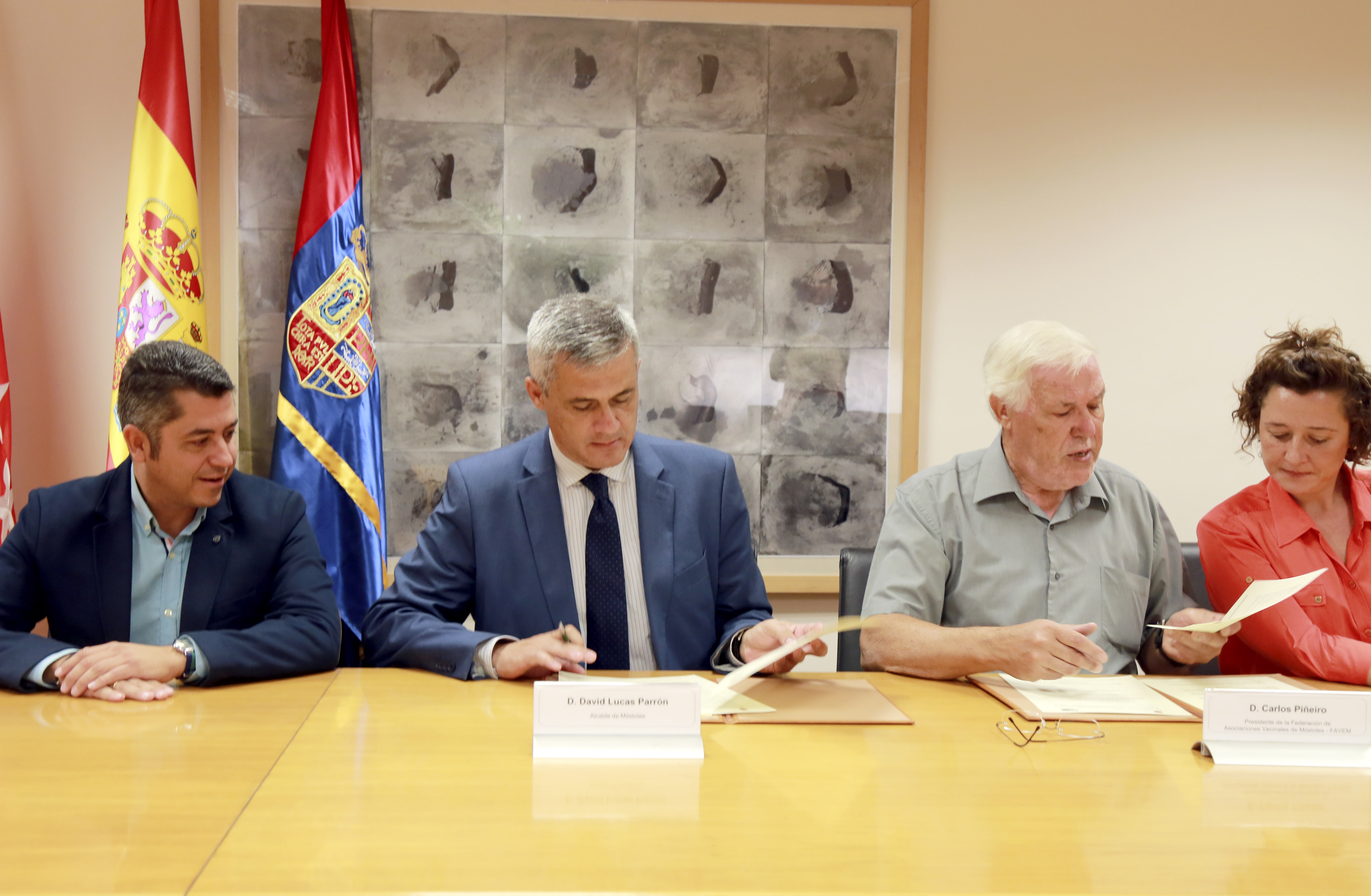 Imagen en alta resolución. Este enlace se abrirá mediante lightbox, puede haber un cambio de contextoEl alcalde de Móstoles, David Lucas, y el presidente de la Federación de Asociaciones Vecinales de Móstoles (FAVEM), Carlos Piñeiro, han firmado esta mañana un convenio de colaboración que se enmarca dentro de la política y preocupación del gobierno municipal de llevar a cabo una participación real y efectiva de los colectivos en la gestión de los asuntos que afectan directamente a los ciudadanos. A la rúbrica han asistido también la concejala de Juventud y Participación Ciudadana, Aránzazu Fernández, y el concejal de Presidencia, Seguridad Ciudadana y Movilidad, Roberto Sánchez.