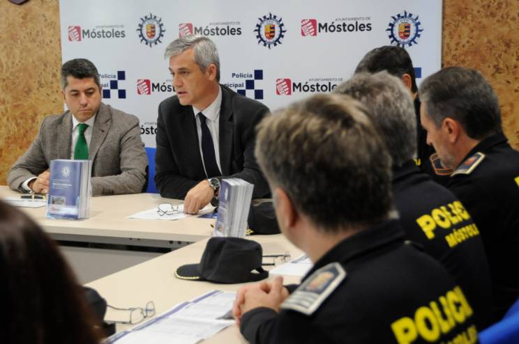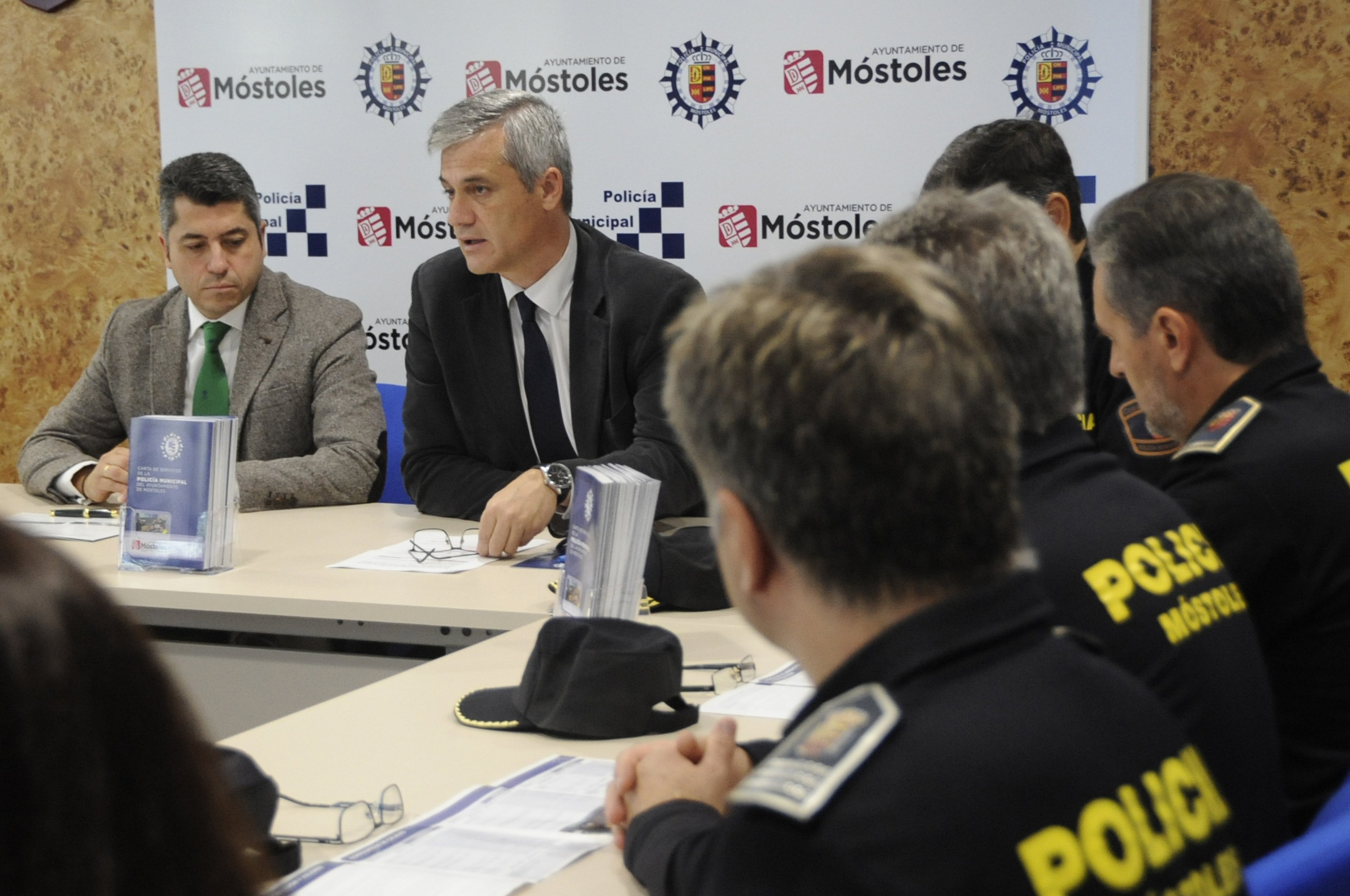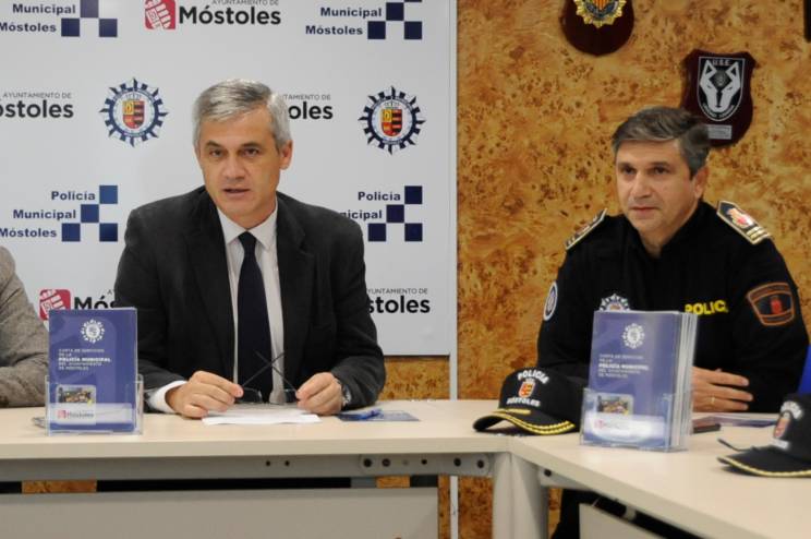 Imagen en alta resolución. Este enlace se abrirá mediante lightbox, puede haber un cambio de contextoEl Alcalde, David Lucas, junto al Concejal de Presidencia, Seguridad Ciudadana y Movilidad, Roberto Sánchez, han presentado acompañados por el Jefe de la Policía de Móstoles, Juan Manuel Arribas, la Carta de Servicios de la Policía Municipal, que fue aprobada por la Junta de Gobierno Local el 8 de marzo de este año. Esta iniciativa forma parte del proceso de cambio y mejora de los servicios de la policía con la ciudadanía, ya iniciado con la aprobación de la nueva estructura organizativa.