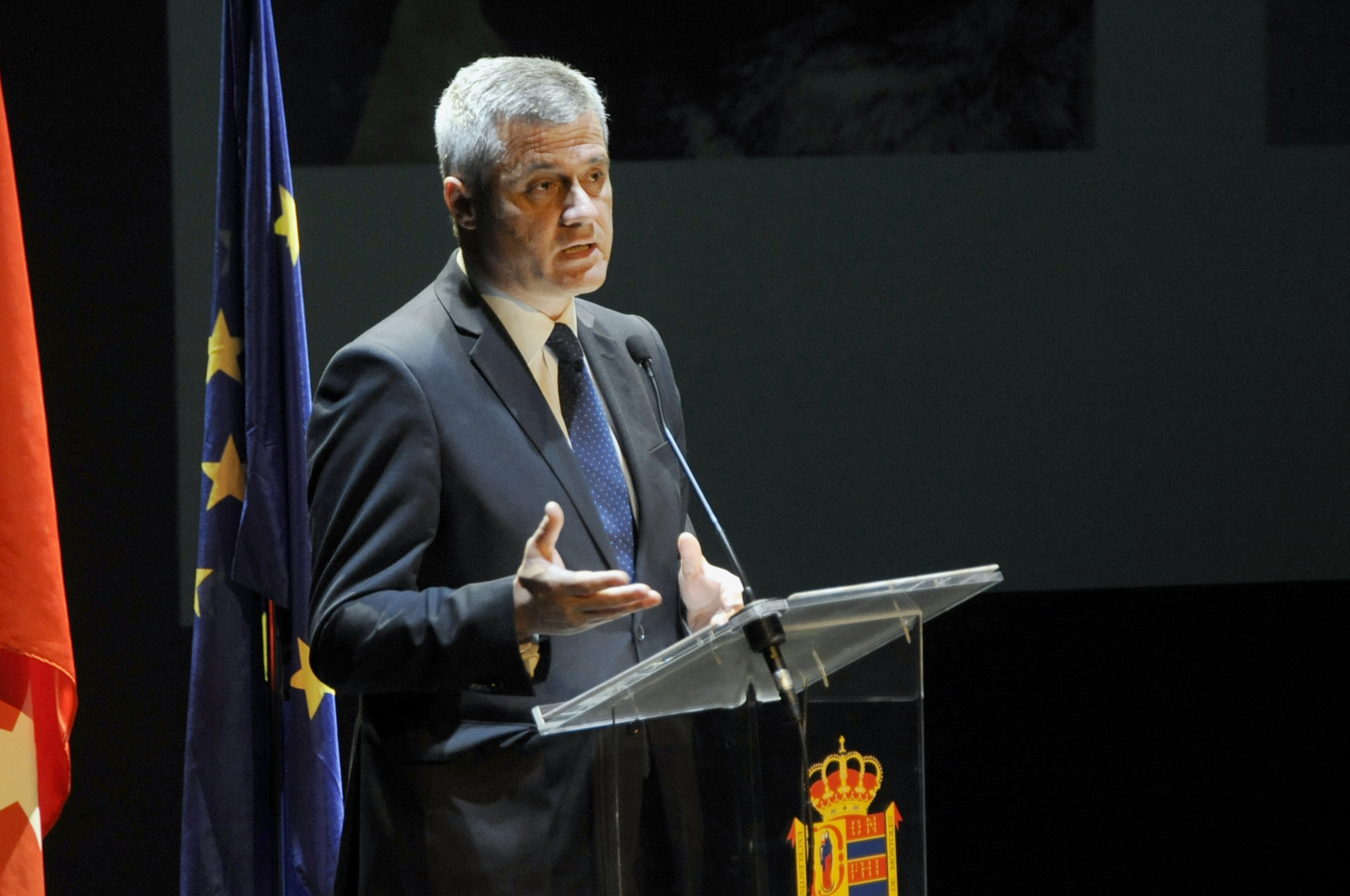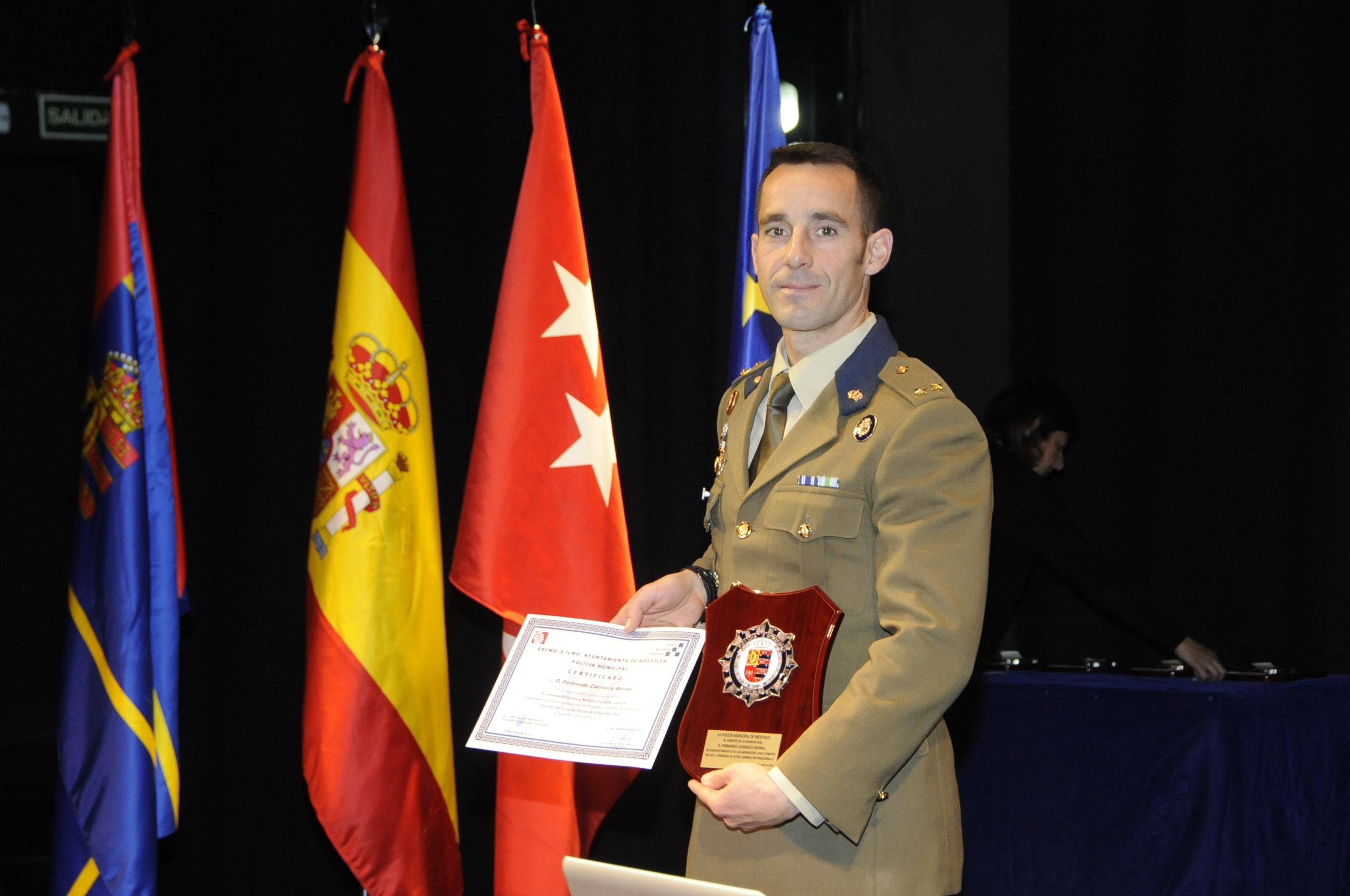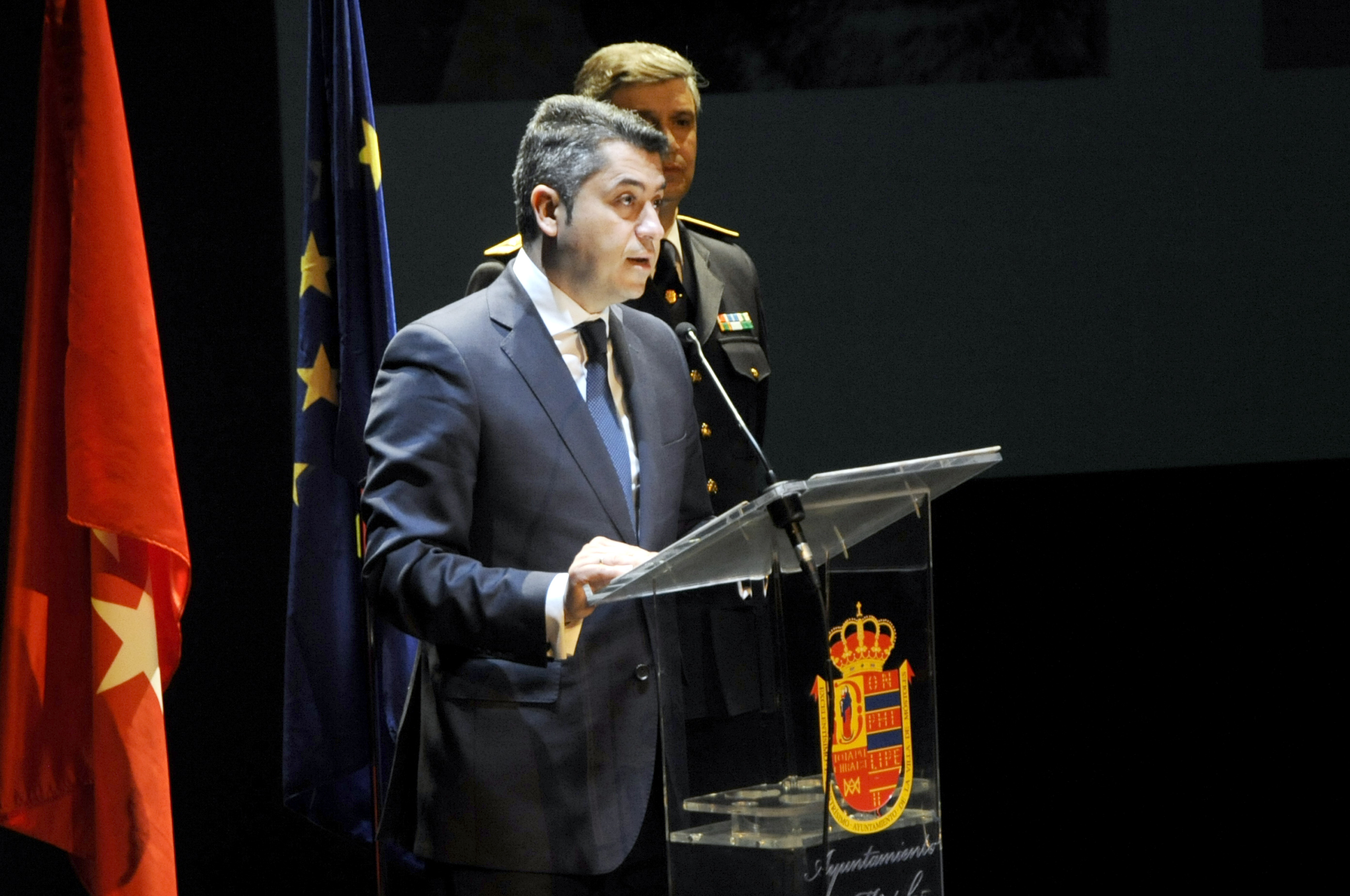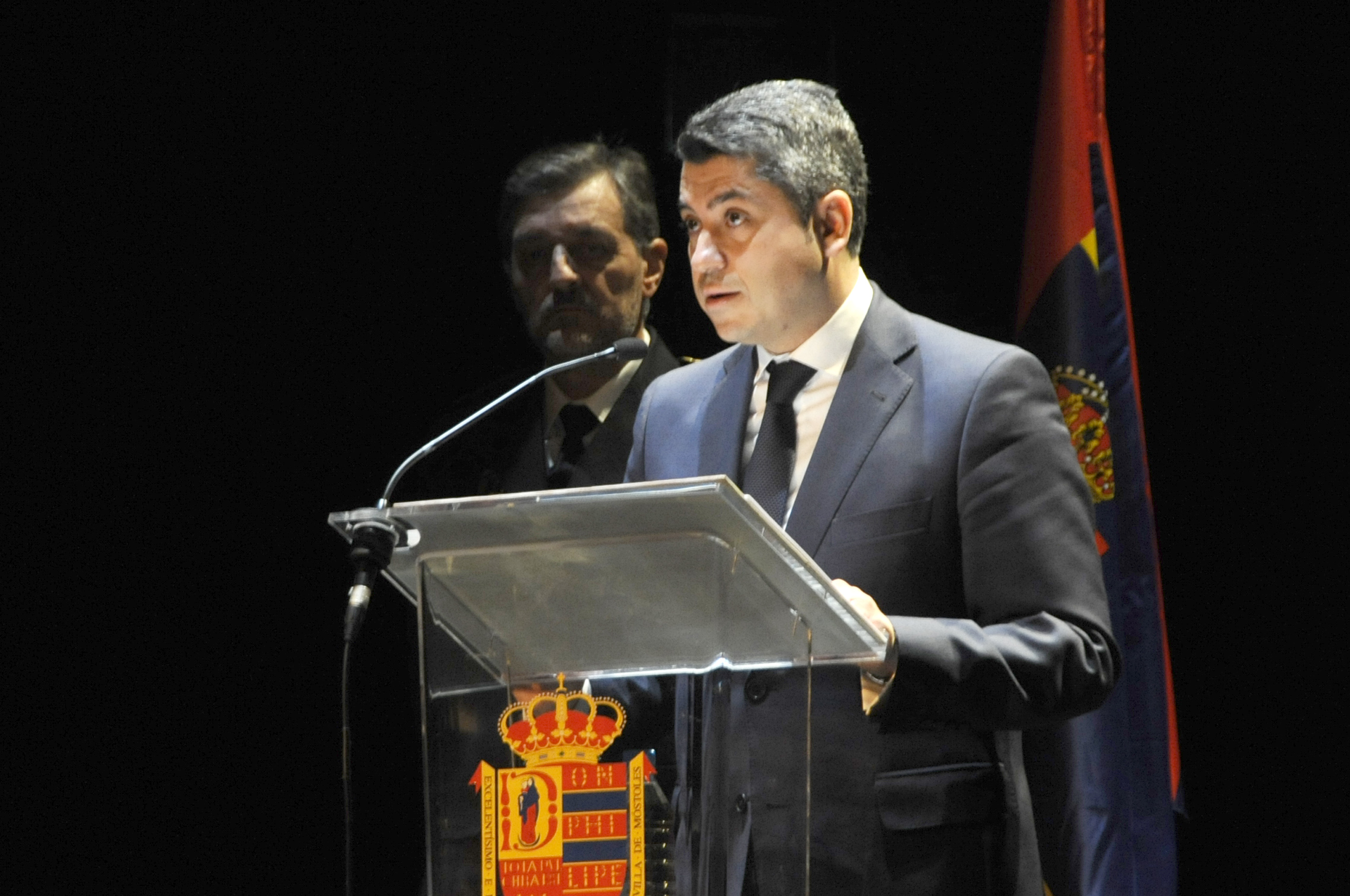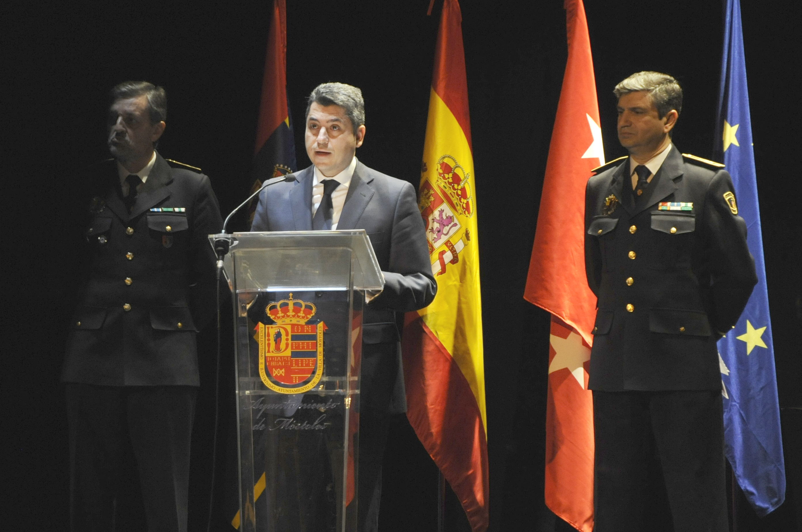 Imagen en alta resolución. Este enlace se abrirá mediante lightbox, puede haber un cambio de contextoEl alcalde de Móstoles, David Lucas, junto al concejal de Presidencia, Seguridad Ciudadana y Movilidad, Roberto Sánchez, ha asistido esta mañana al Teatro del Bosque de Móstoles para participar en el acto institucional y entrega de reconocimientos y galardones de las `V Jornadas Policiales y Militares de Guías Caninos´.
