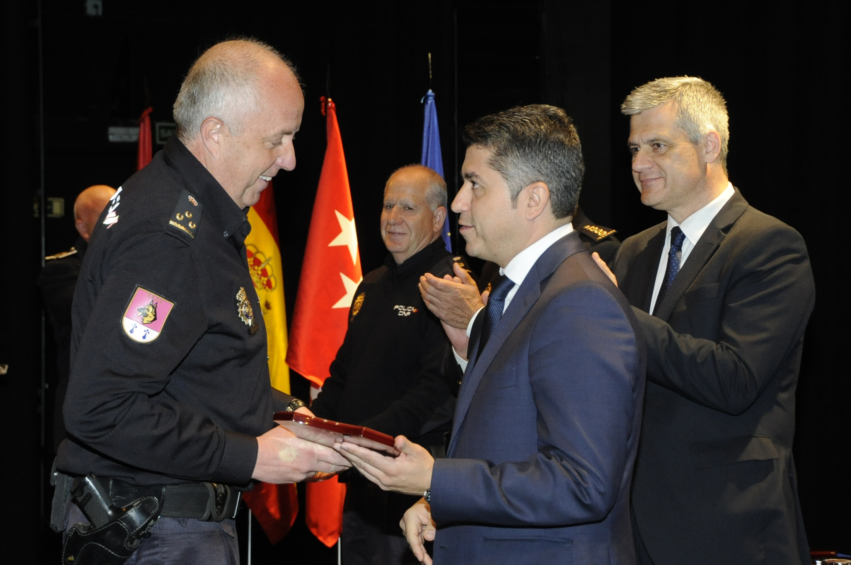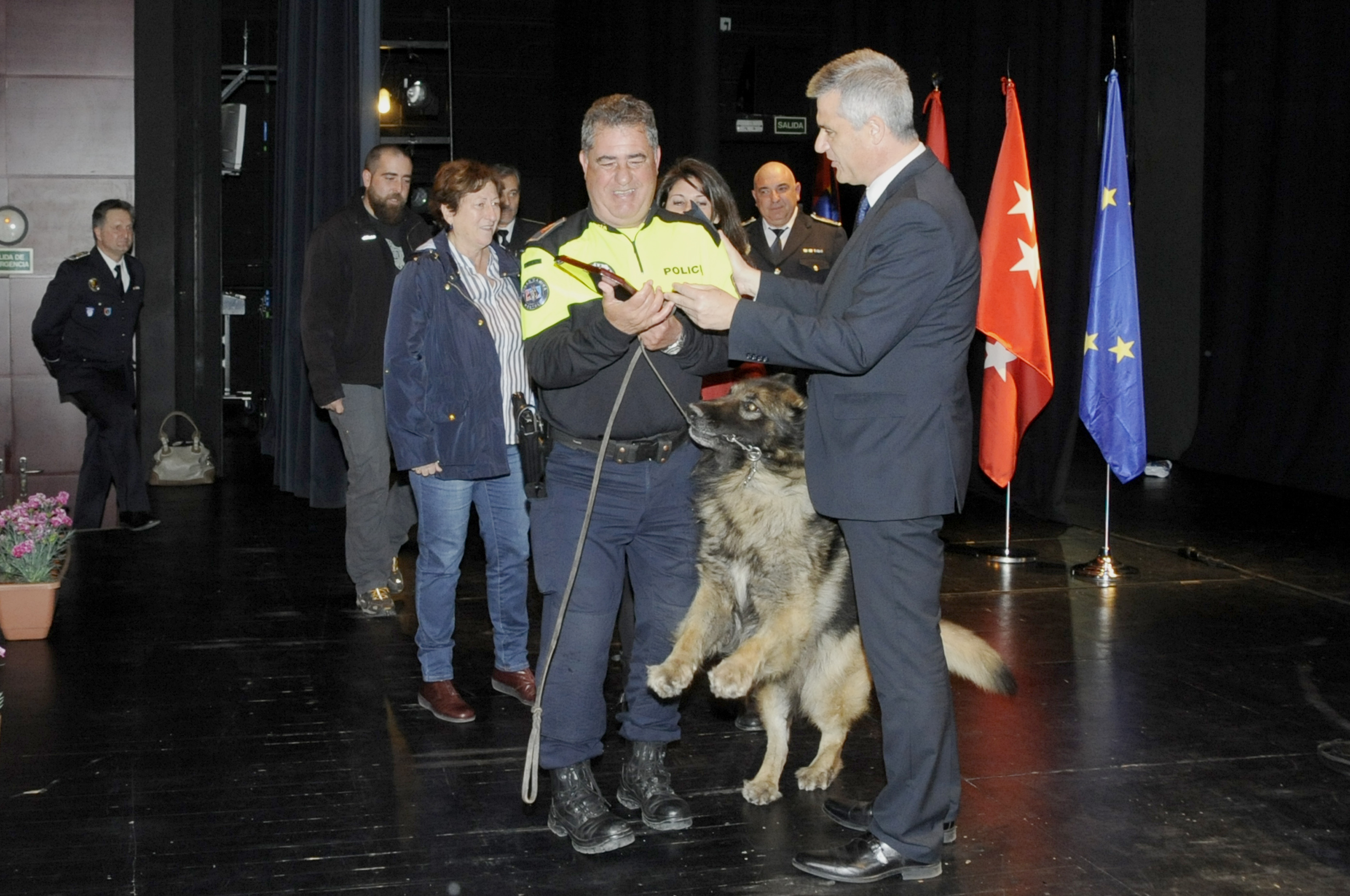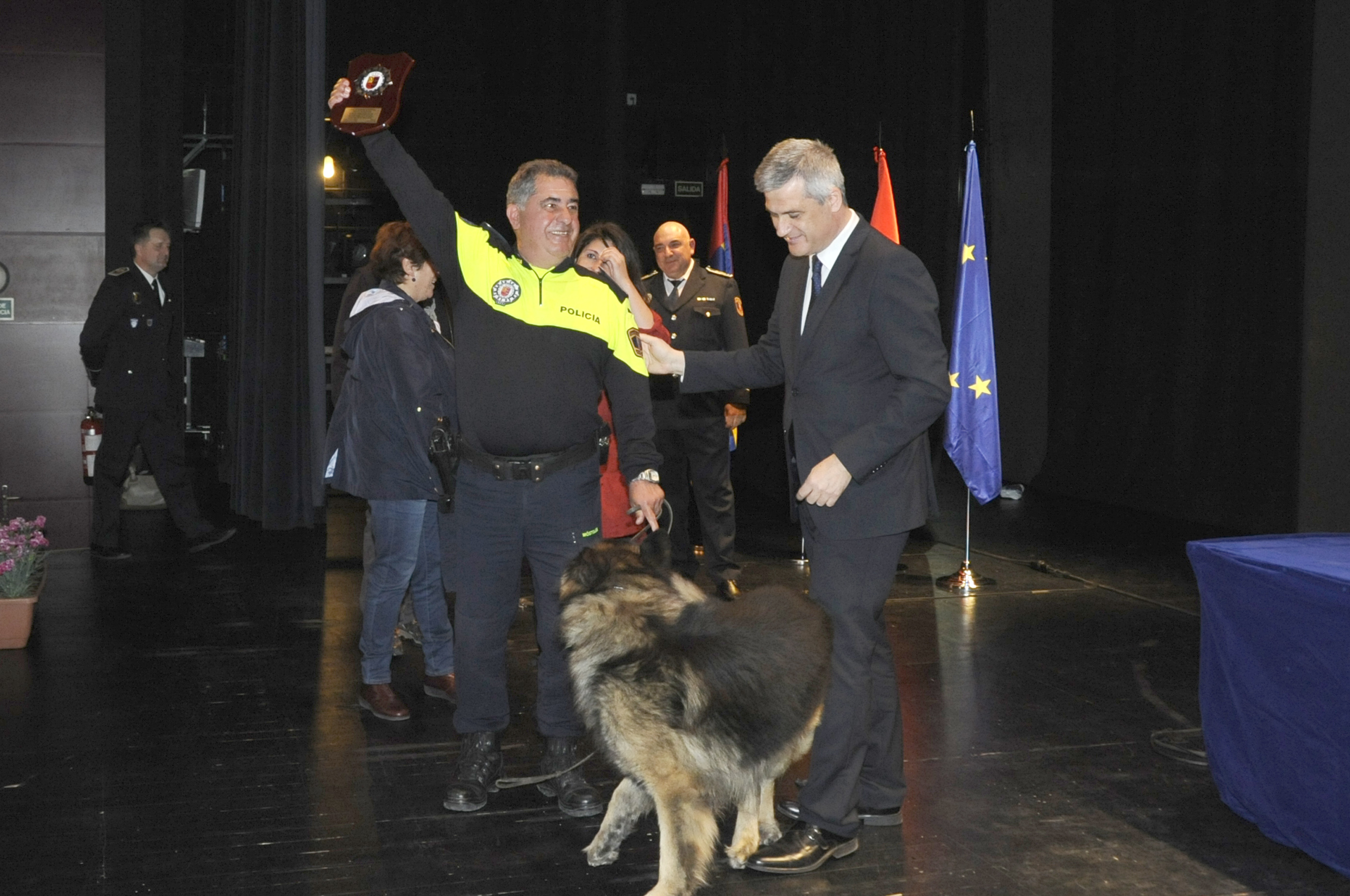 El apartado más emotivo del acto institucional lo constituyó el homenaje realizado a ocho policías, dos a título póstumo, junto a unas proyecciones fotográficas y la lectura de una breve biografía de cada uno de ellos. Todos pertenecen o han pertenecido por más de 20 años a las unidades caninas de distintos cuerpos.