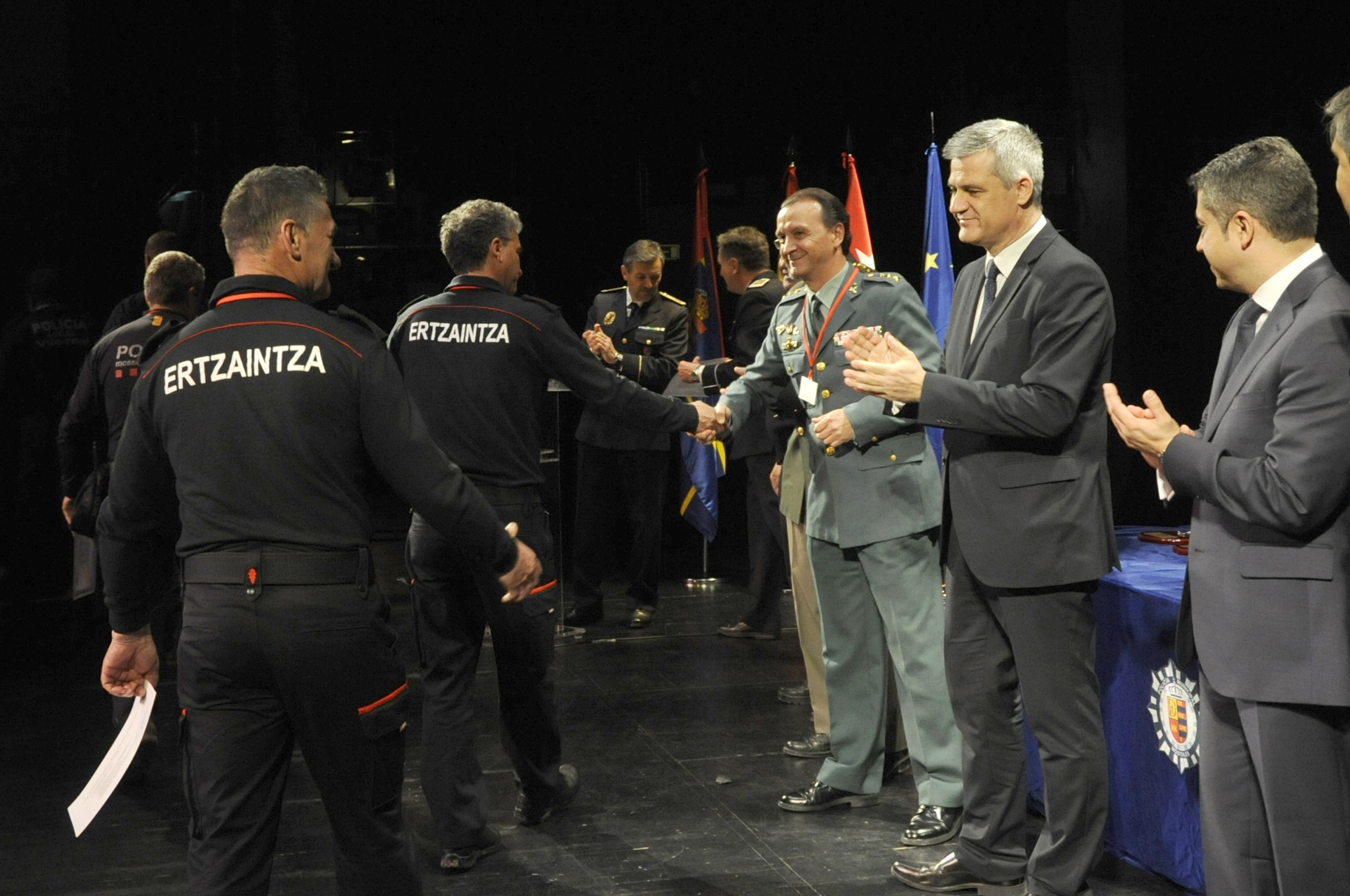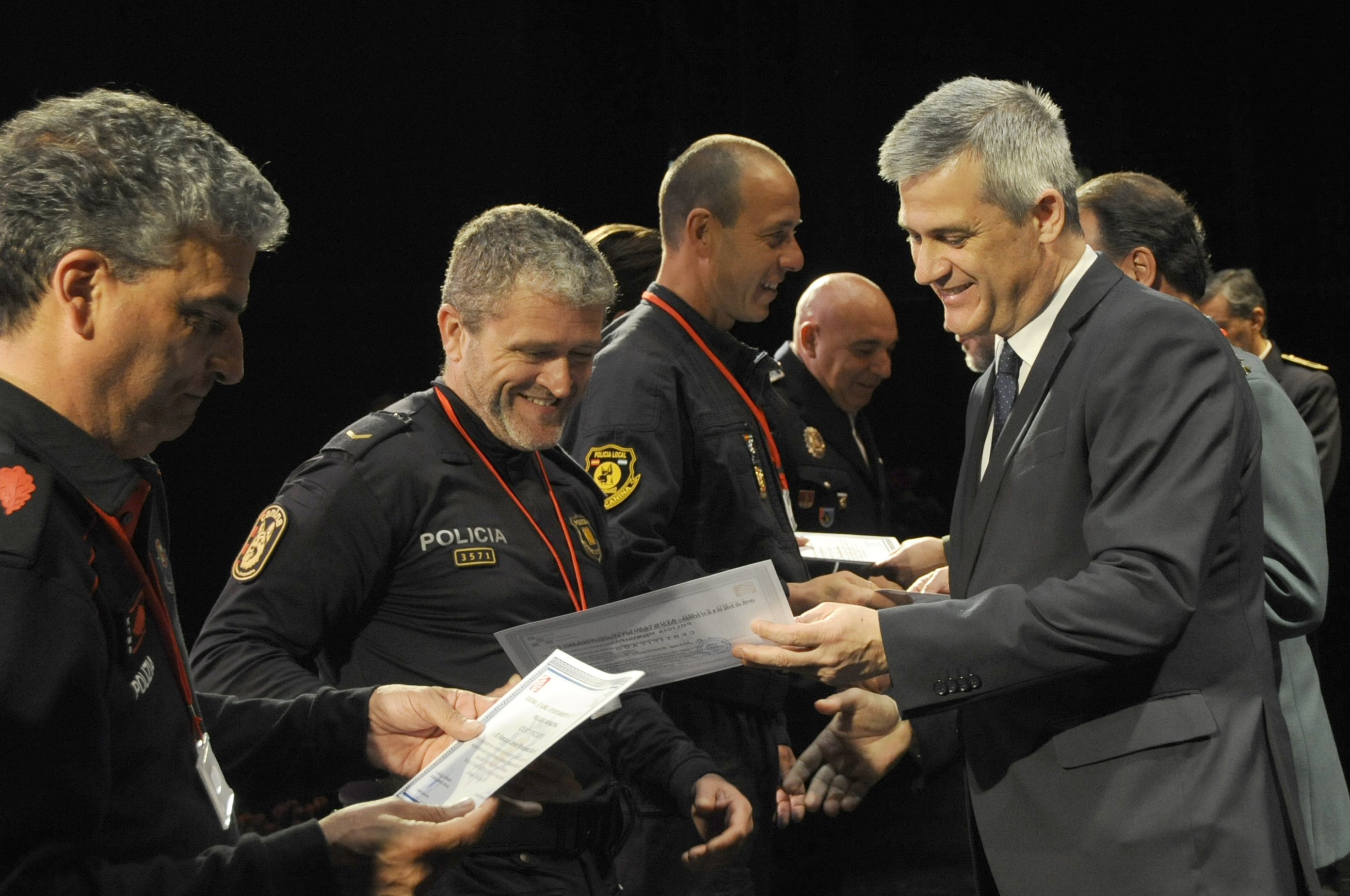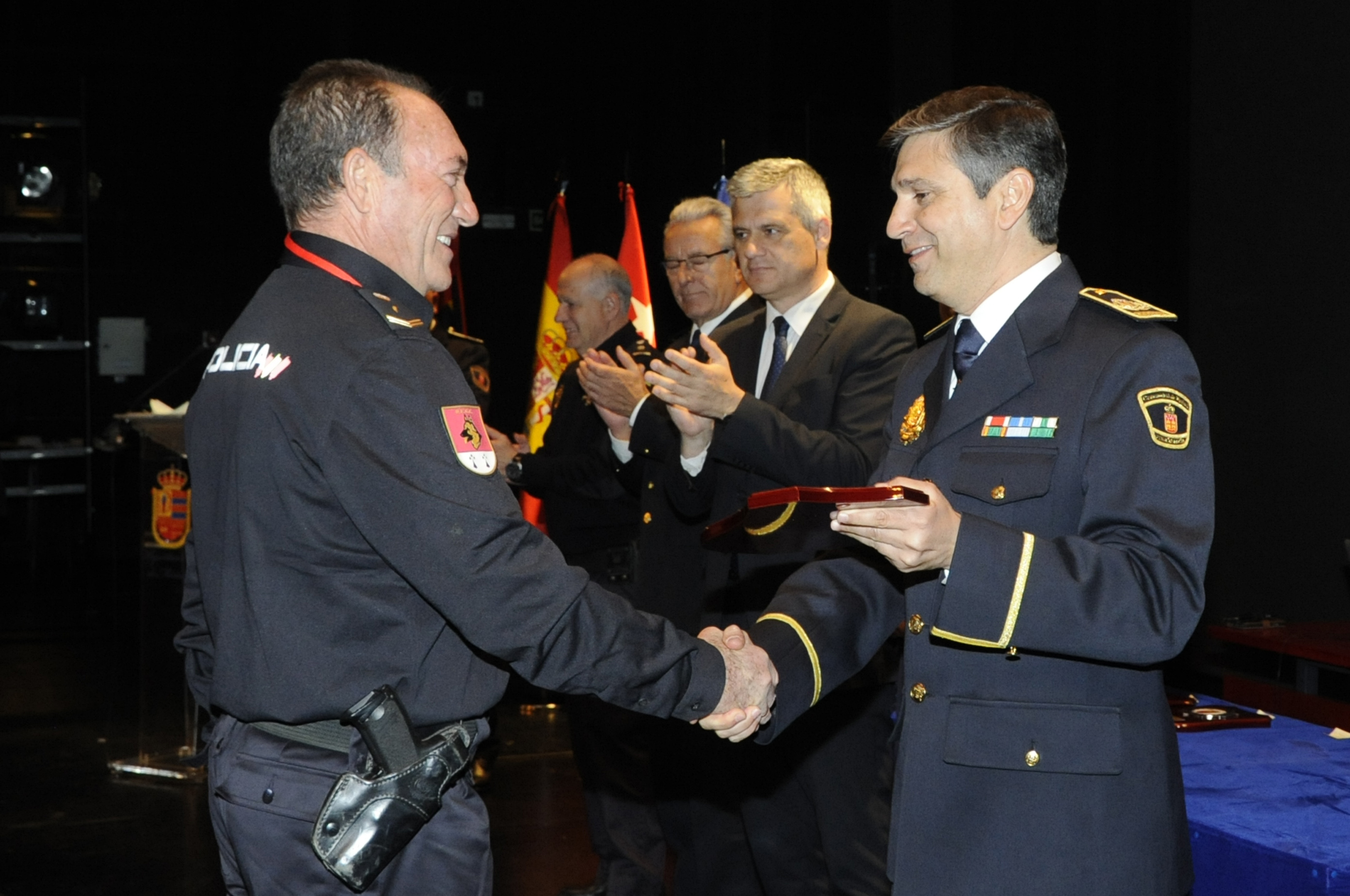 El apartado más emotivo del acto institucional lo constituyó el homenaje realizado a ocho policías, dos a título póstumo, junto a unas proyecciones fotográficas y la lectura de una breve biografía de cada uno de ellos. Todos pertenecen o han pertenecido por más de 20 años a las unidades caninas de distintos cuerpos.