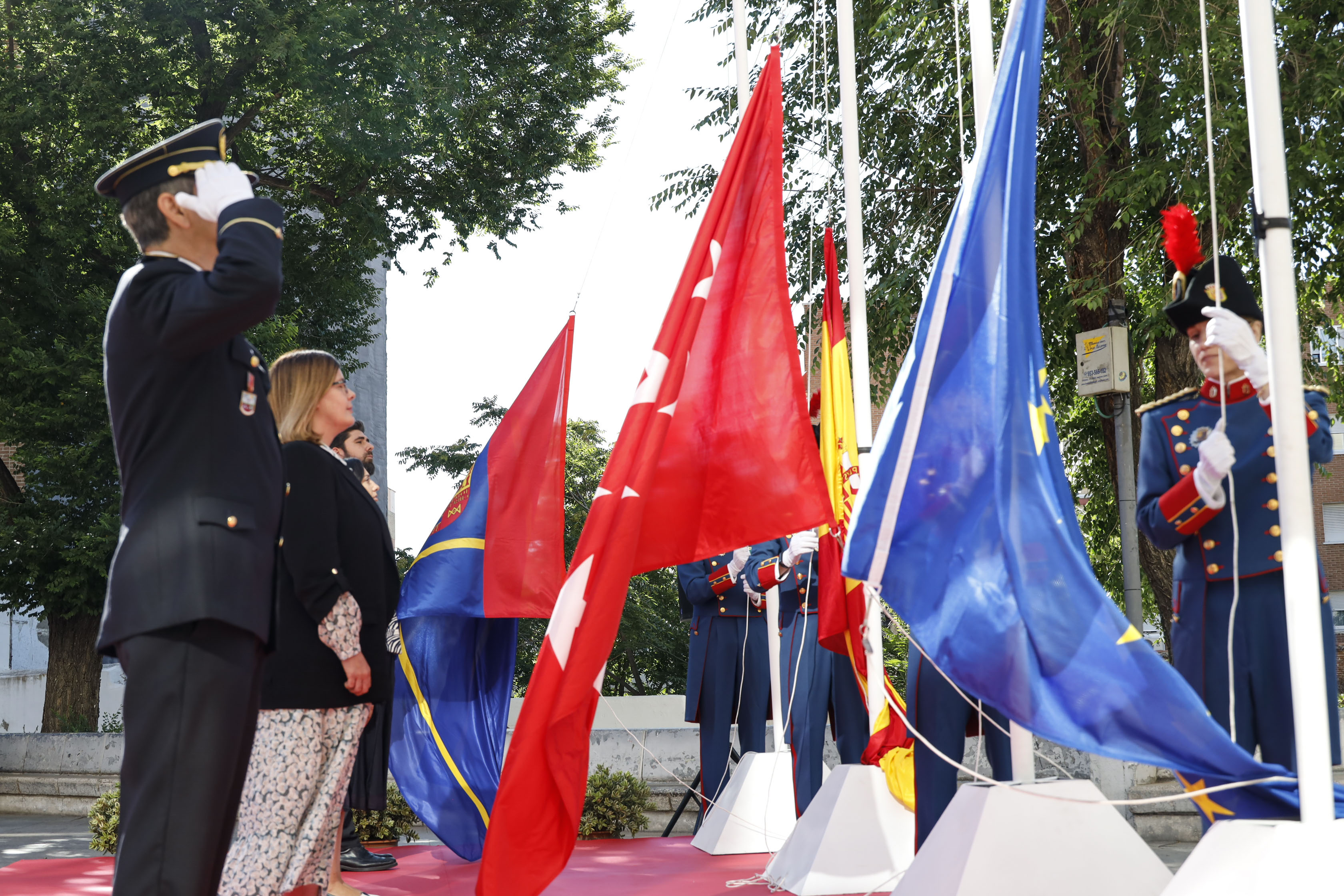 El evento en honor a San Juan Bautista ha arrancado con la Delegada del Gobierno y la Alcaldesa pasando revista a una representación de las unidades de Policía Municipal. Posteriormente, agentes vestidos con el traje de gala del bicentenario del 2 de Mayo de 1808 han procedido al izado de las banderas mientras se hacía sonar el himno de España.