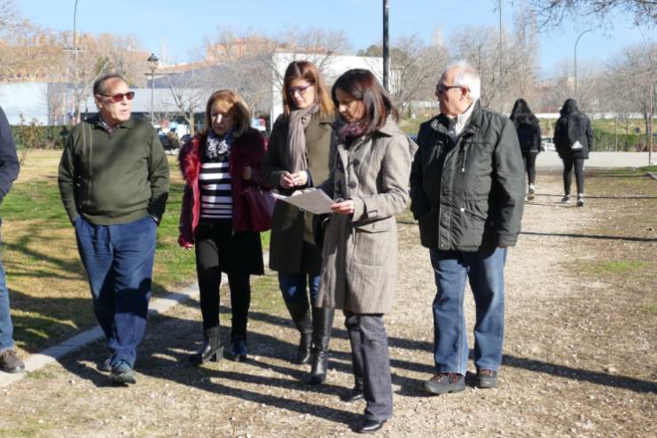 Imagen en alta resolución. Este enlace se abrirá mediante lightbox, puede haber un cambio de contextoLa alcaldesa de Móstoles, Noelia Posse, junto a la Concejala de Derechos Sociales y Mayores y presidenta de la Junta de Distrito 2, Lola Triviño y ciudadanos representantes de la Plataforma de Vecinos Parque Estoril 2, han mantenido esta mañana un encuentro para supervisar conjuntamente las zonas verdes del distrito, en especial las comprendidas en el Parque de los Planetas. Los vecinos han trasladado a la primera edil sugerencias relativas al mantenimiento de los parques y jardines de esta zona.