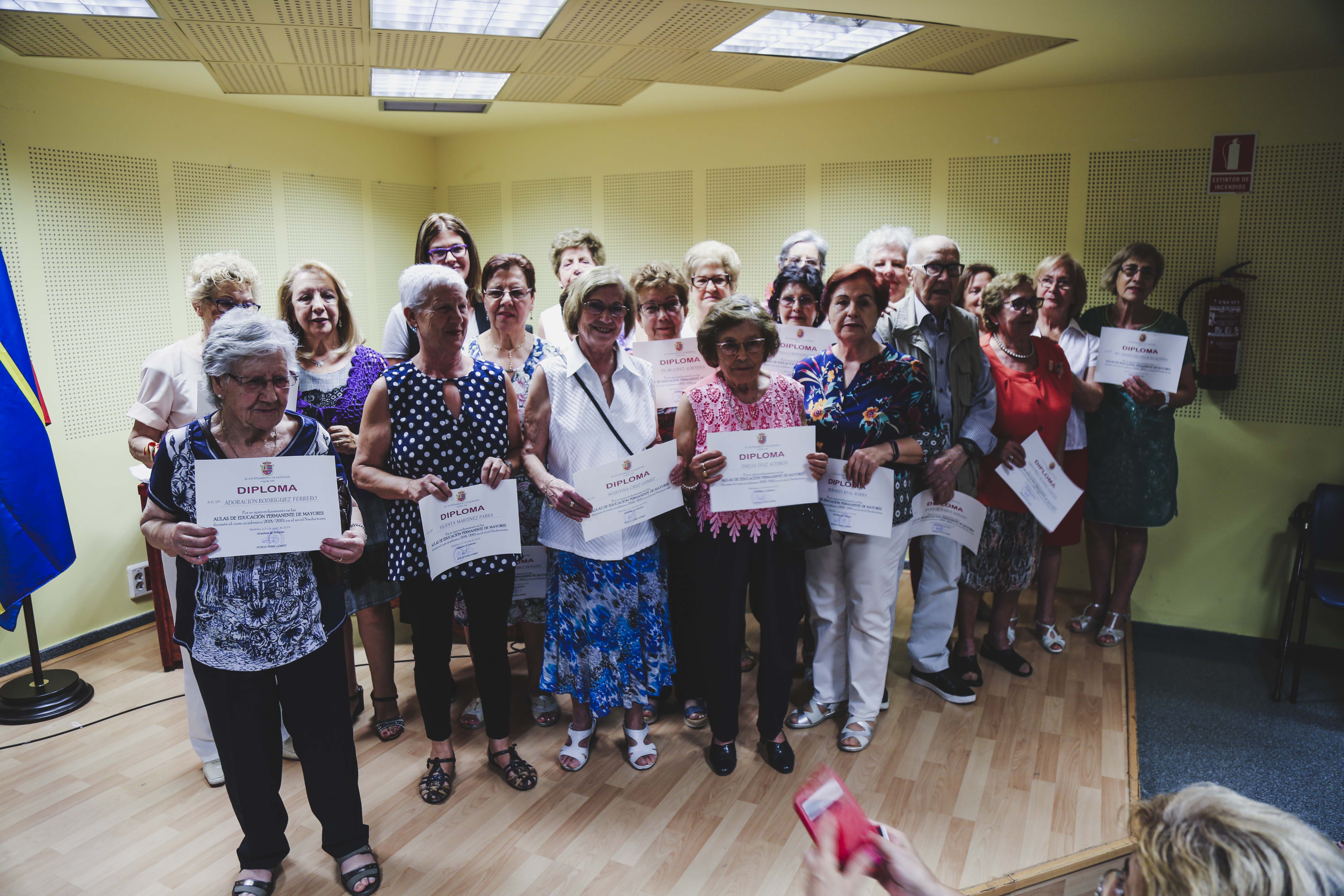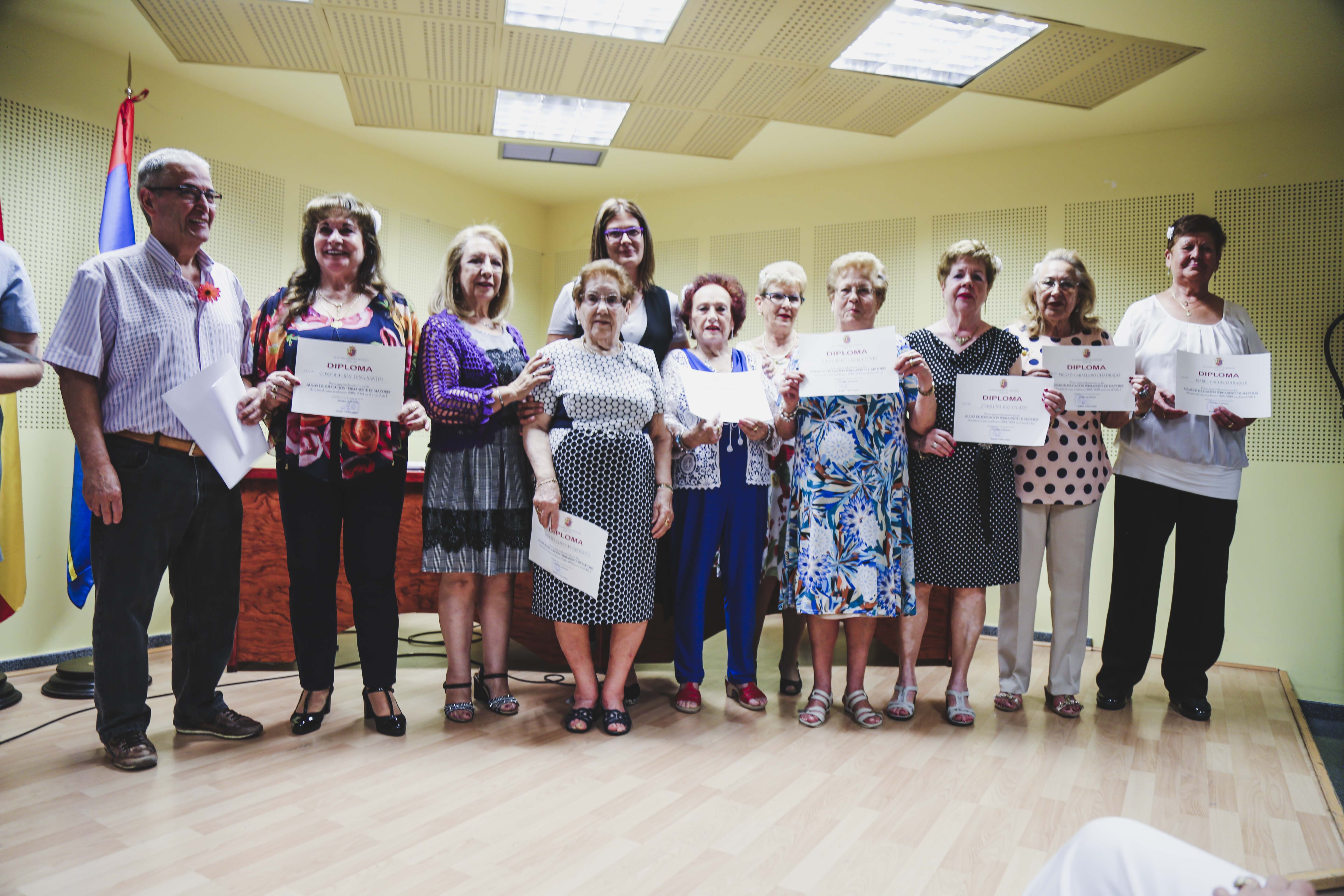 Durante el acto, la Alcaldesa y la Concejala han hecho entrega de los diplomas que acreditan el esfuerzo y la constancia que durante todo el año han realizado las y los matriculados en las Aulas de Formación Permanente de Mayores. Además, se ha reconocido también, por su labor desinteresada, a las profesoras y profesores, así como a los colaboradores de los diferentes talleres que se han desarrollado durante los meses de octubre de 2018 a junio de 2019.