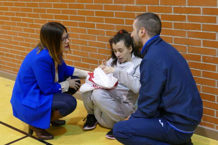 La alcaldesa de Móstoles, Noelia Posse, acude al entrenamiento del Club de Baloncesto Ciudad de Móstoles y Grupo AMÁS