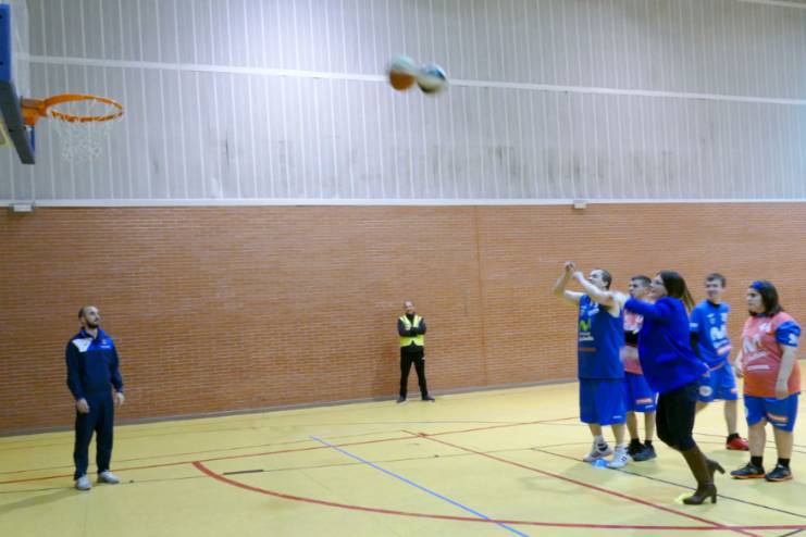 La alcaldesa de Móstoles, Noelia Posse, acudió ayer al Polideportivo los Rosales para disfrutar de uno de los entrenamientos del Club de Baloncesto Ciudad de Móstoles y del Grupo Amás.