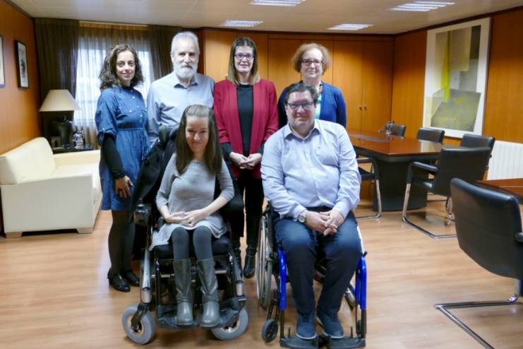 La alcaldesa de Móstoles, Noelia Posse, junto a la concejala de Igualdad, Sanidad y Mayores, Ana María Rodrigo, ha recibido esta mañana a miembros de la Junta Directiva de la Asociación de Discapacitados Físicos de Móstoles (ADISFIM), encabezados por su presidente, Julio Antona Castejón.