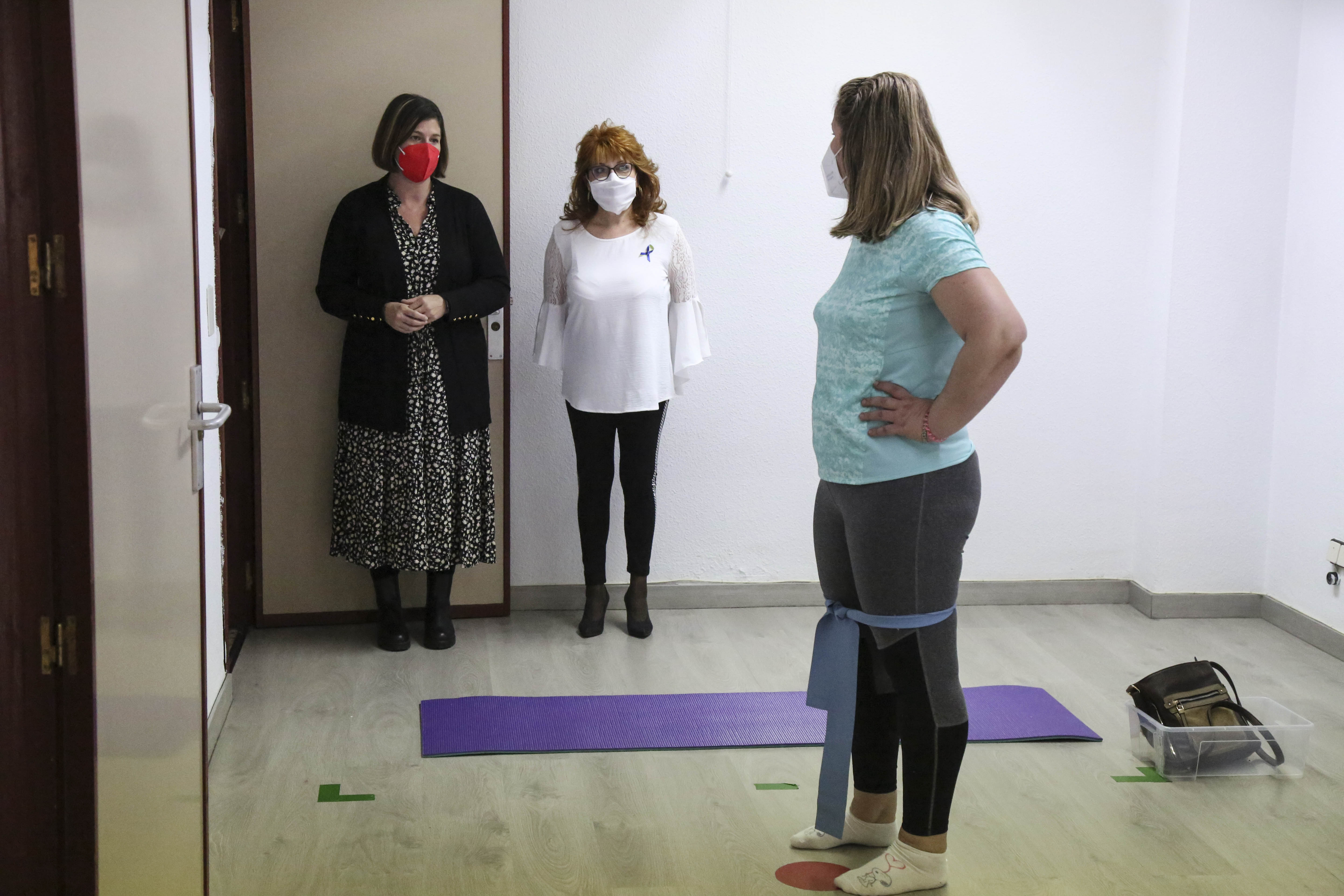 Imagen en alta resolución. Este enlace se abrirá mediante lightbox, puede haber un cambio de contextoCon motivo del Día Mundial de la Fibromialgia y el Síndrome de Fatiga Crónica, la Alcaldesa de Móstoles, Noelia Posse, acompañada por la Concejala de Derechos Sociales y Mayores, Ángela Viedma, la Portavoz de Podemos, Mónica Monterreal, y la Presidenta de la Asociación, María Helena García, ha visitado las instalaciones de la Asociación de Fibromialgia y Síndrome de Fatiga Crónica (Afinsyfacro), donde ha asistido a una clase de pilates impartida en una de las salas de terapia del centro.