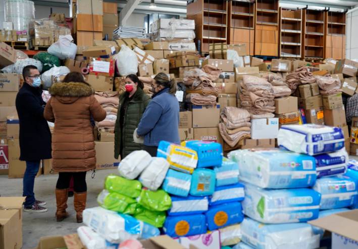 La Alcaldesa de Móstoles, Noelia Posse, acompañada por el Teniente de Alcaldesa, David Muñoz y la Concejala de Igualdad, Lola Triviño, ha visitado la nave municipal en la que la Asociación "Por El Futuro de Ucrania", está almacenando, clasificando y enviando a Ucrania todas las ayudas que están siendo donadas por la ciudadanía de Móstoles a través de las Juntas de Distrito del Municipio y en la Oficina de Atención al Vecino.