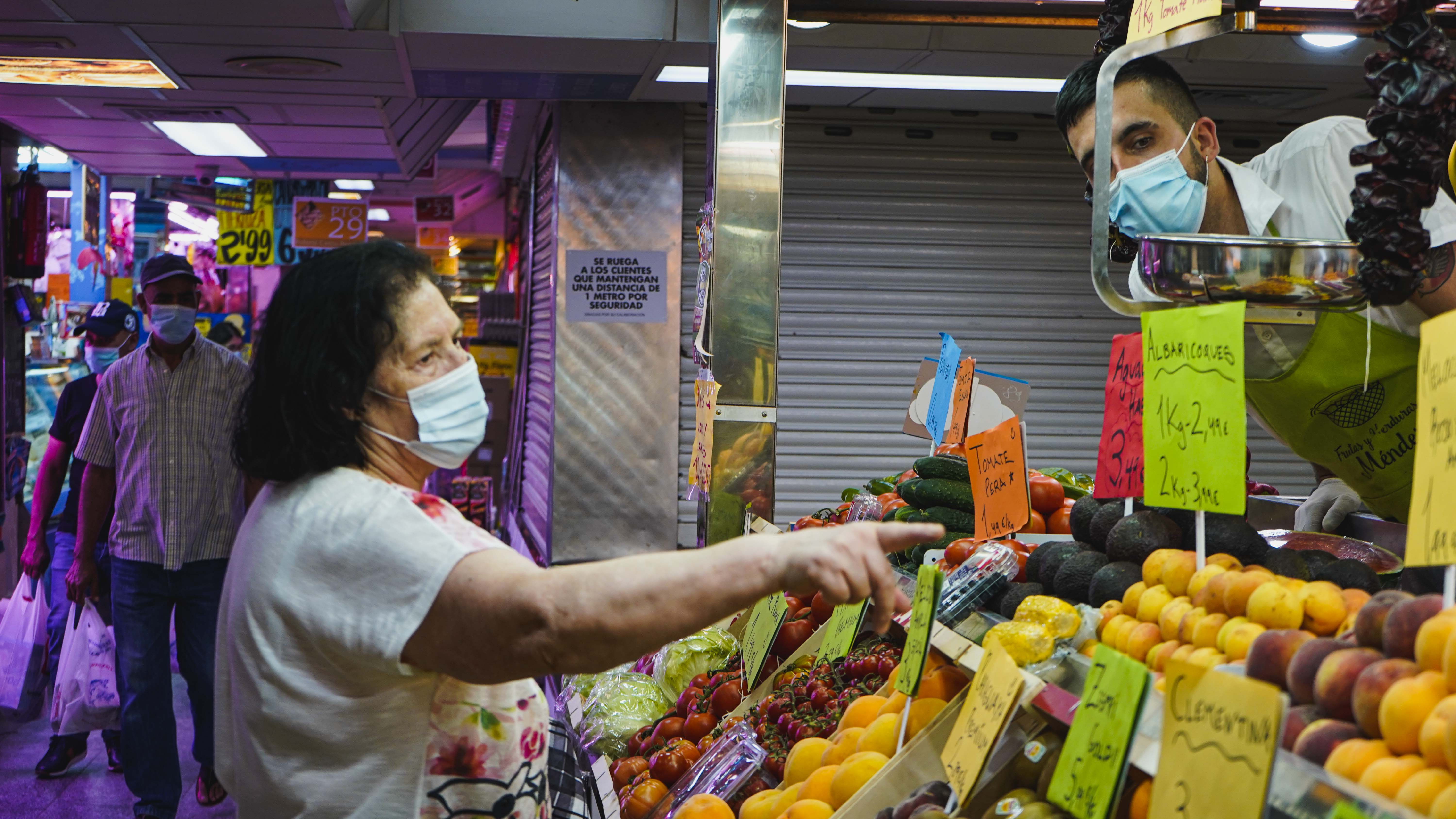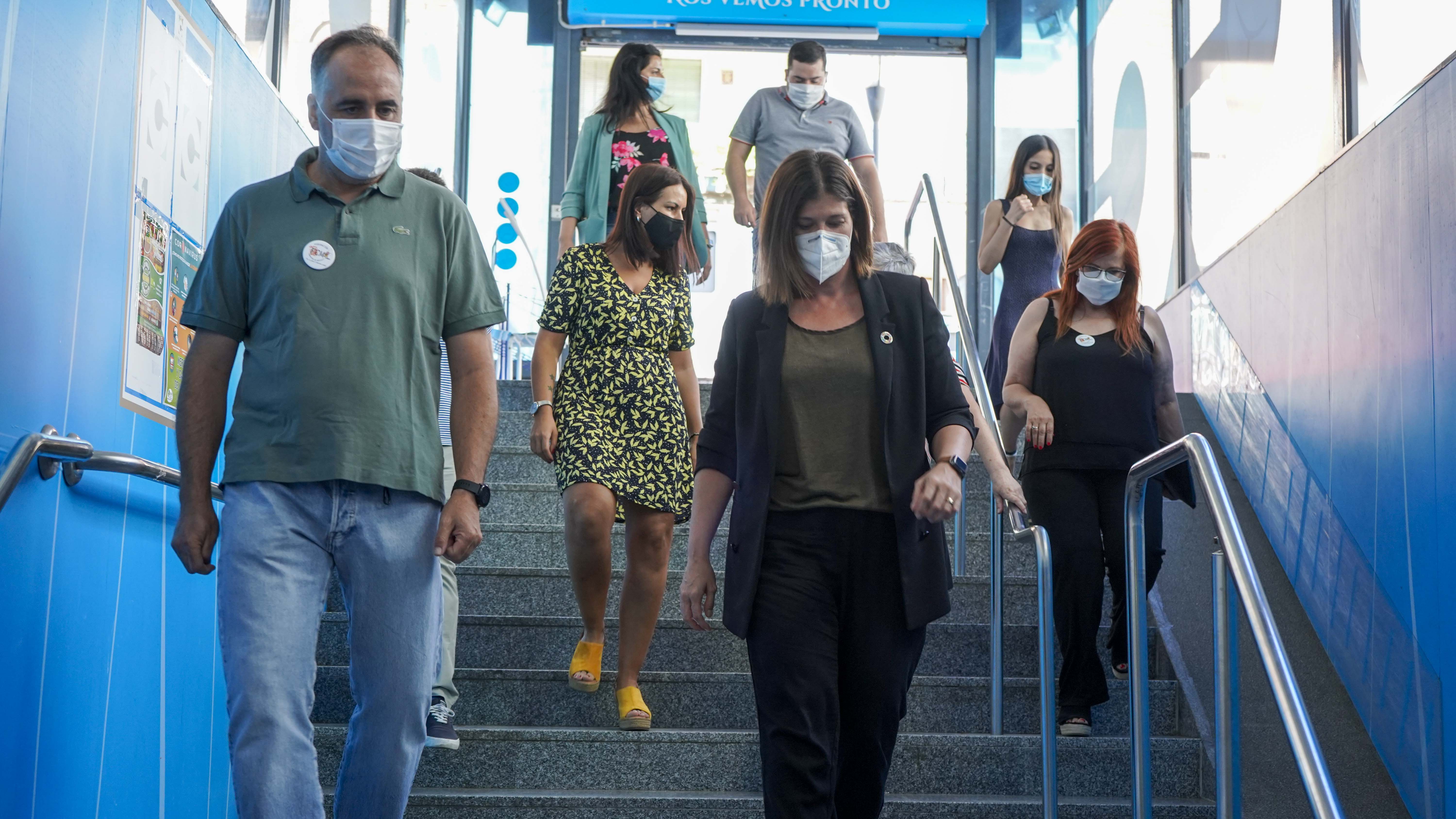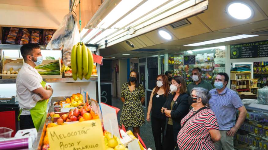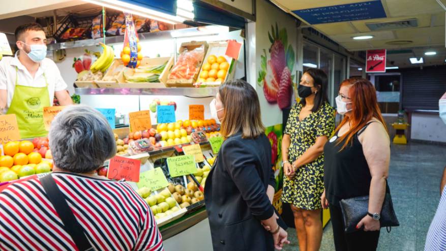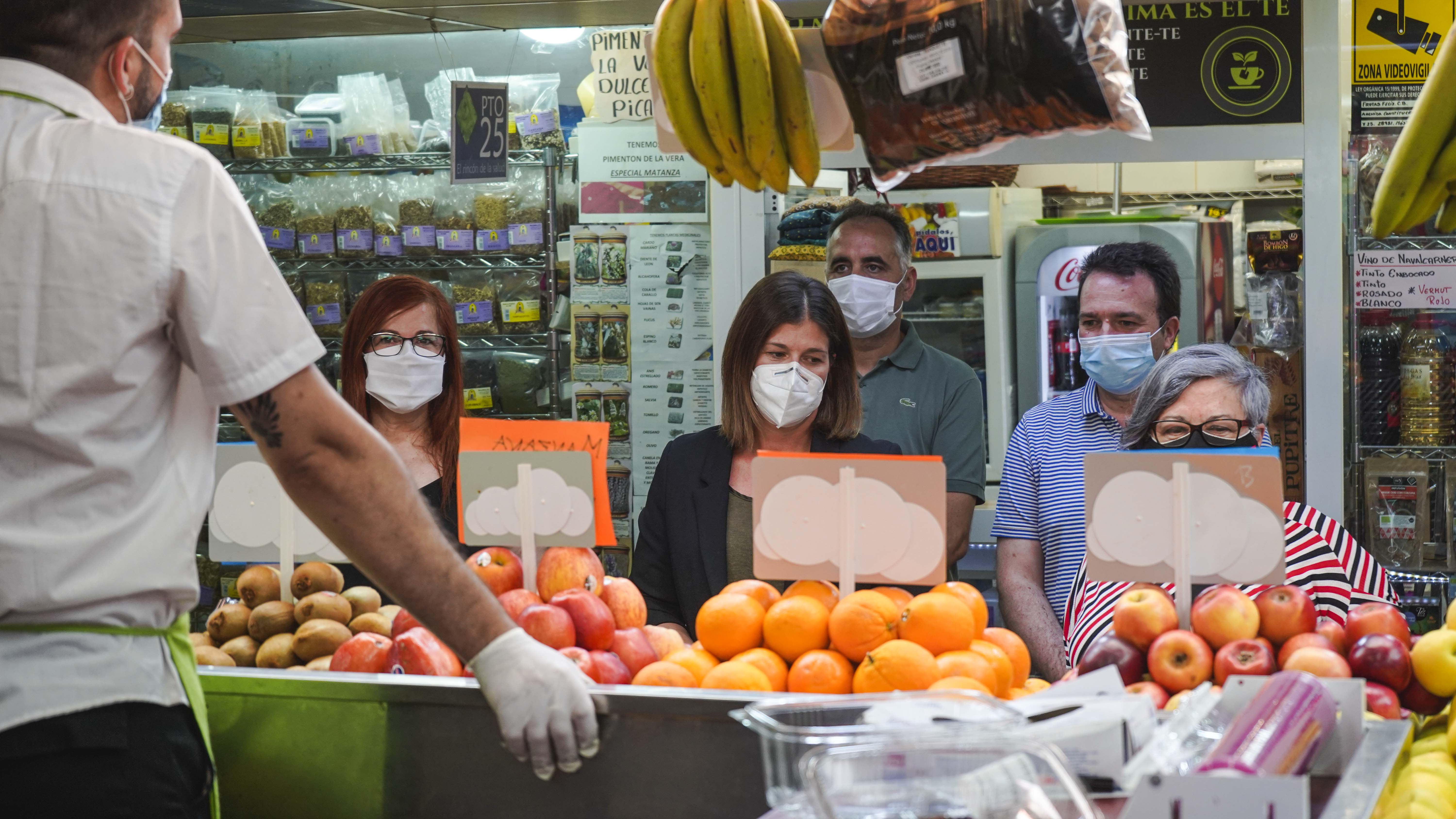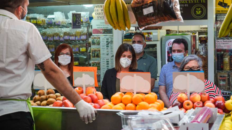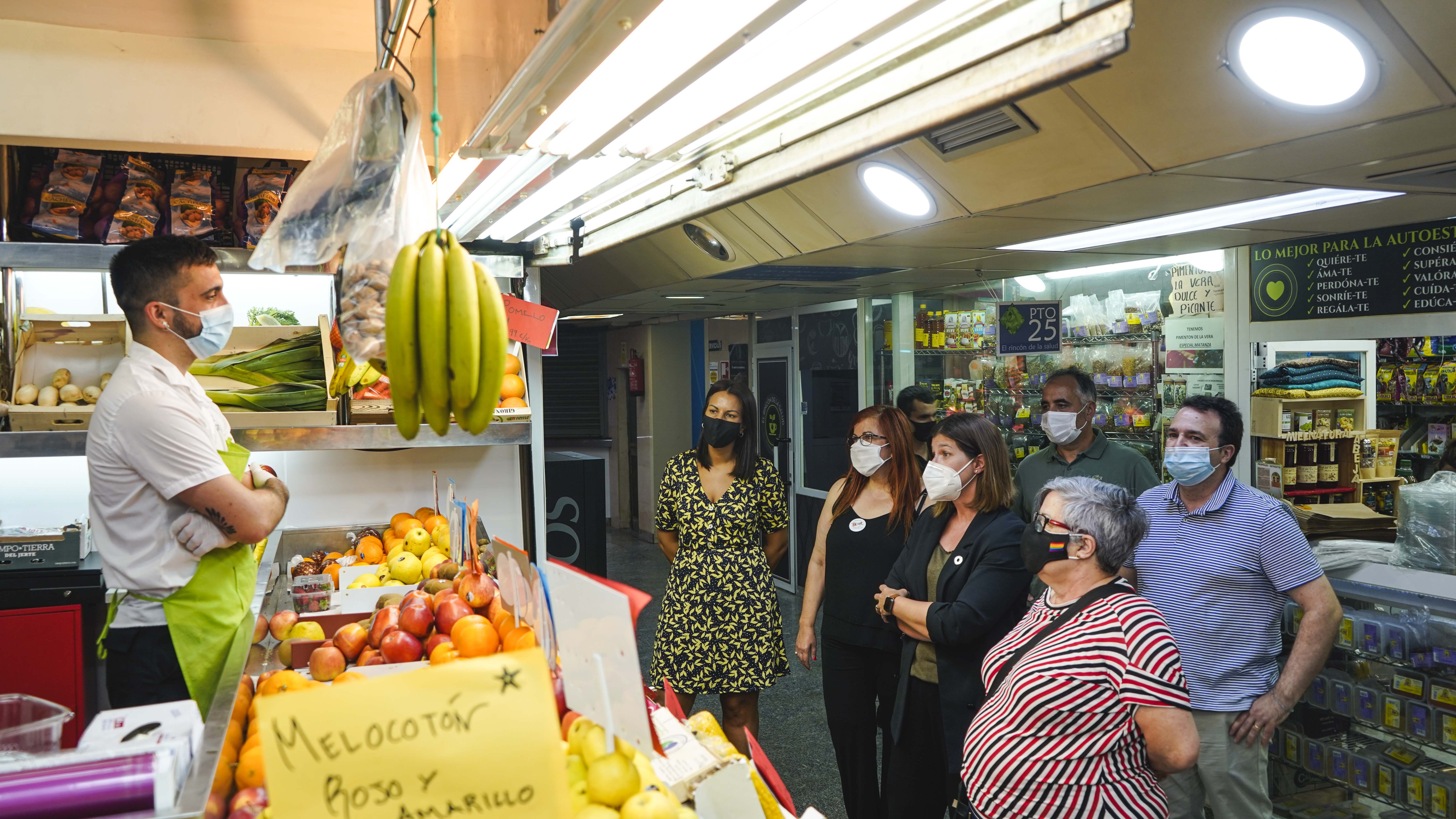 Acompañada también por el director del mercado, Juan Pedro Minaya, ha visitado una de las fruterías, la de Ismael Méndez, un pequeño comerciante de 24 años que, al que el Estado de Alarma le sorprendió solo unos días después de abrir su negocio en uno de los puestos vacíos del mercado.