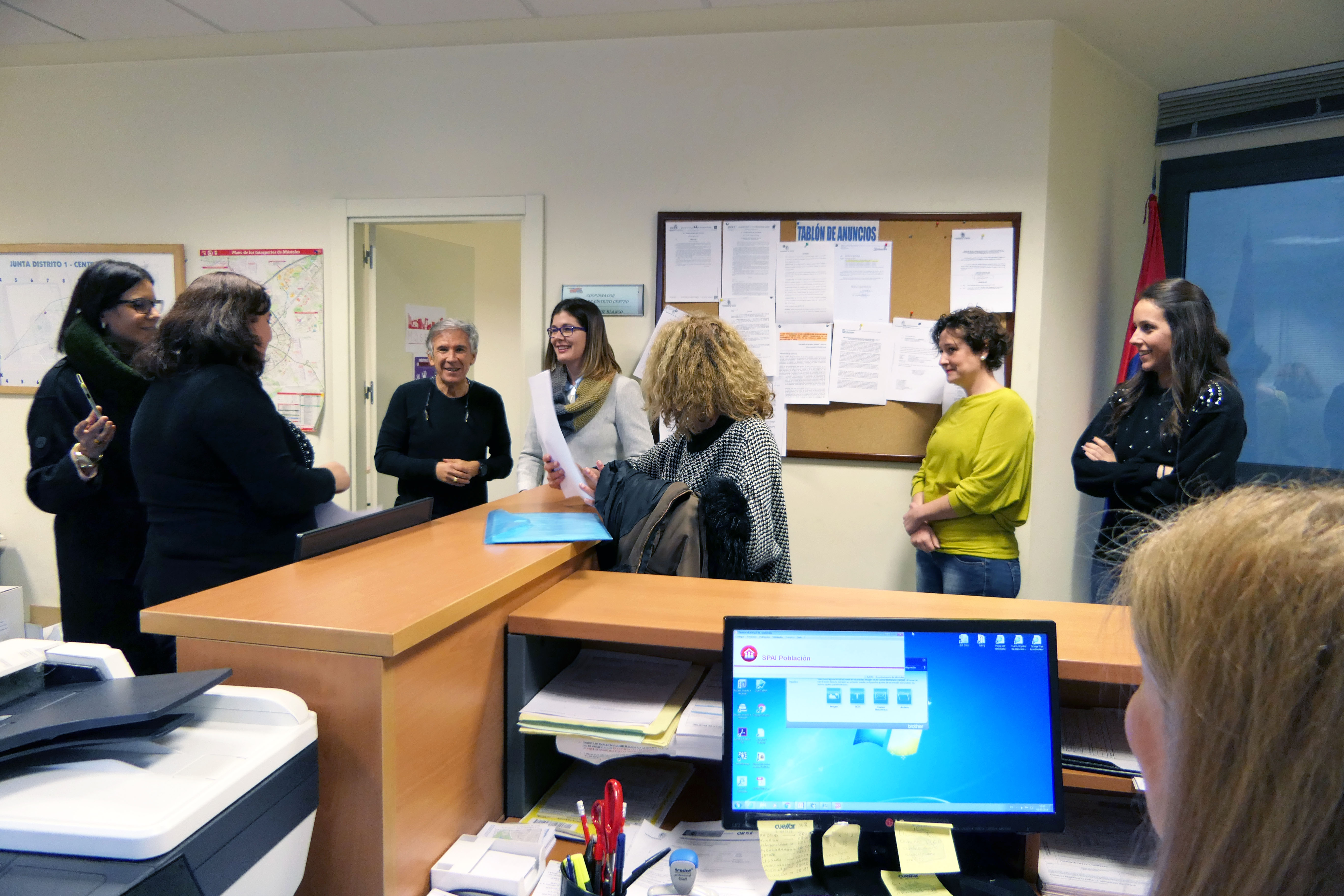 junta de distrito 1 centro 1Imagen en alta resolución. Este enlace se abrirá mediante lightbox, puede haber un cambio de contextojunta de distrito 1 centro 1Los trabajadores y trabajadoras de la Junta de Distrito Centro, ubicada en la calle san Antonio, 2, han recibido esta mañana la visita de la alcaldesa de Móstoles, Noelia Posse. De esta forma, prosigue la ronda que inició la Alcaldesa después de su toma de posesión para conocer las cuestiones relativas al trabajo diario de la plantilla de empleados públicos.