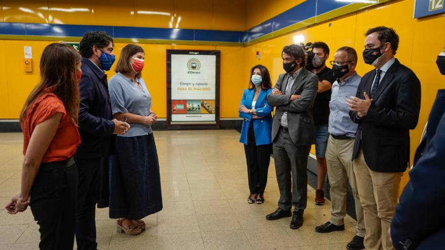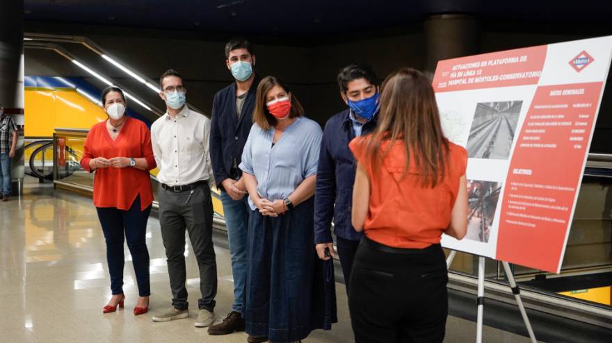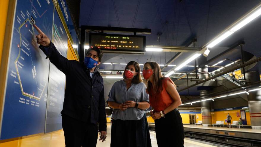 Imagen en alta resolución. Este enlace se abrirá mediante lightbox, puede haber un cambio de contextoLa Alcaldesa, Noelia Posse, ha acompañado hoy al Consejero de Transportes e Infraestructuras, David Pérez, y a la Consejera Delegada de Metro, Silvia Roldán Fernández, en la reapertura del tramo de la línea 12 Metrosur entre las estaciones Hospital de Móstoles y Conservatorio, que ha permanecido cerrado durante este verano para mejorar las instalaciones.