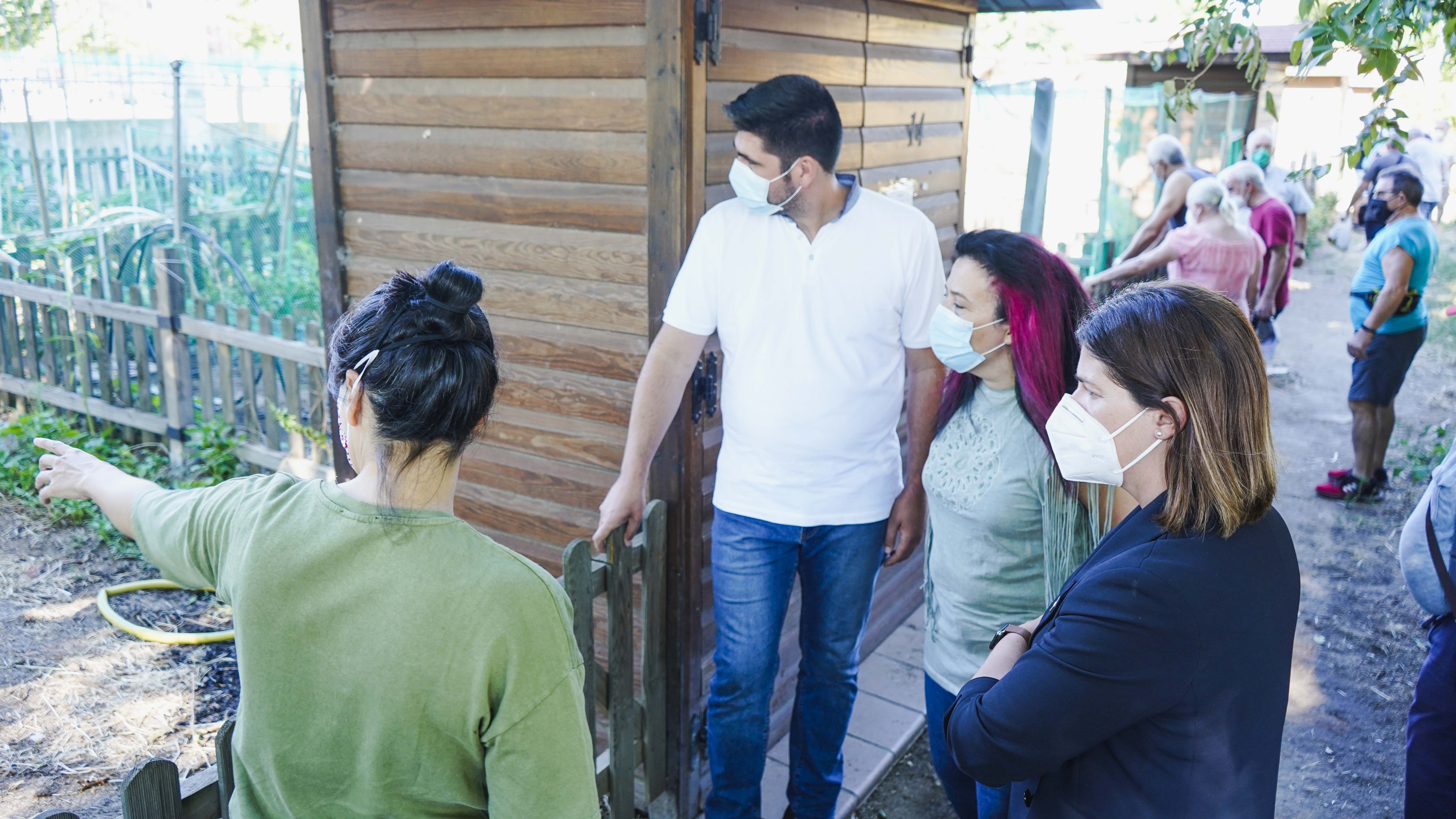 Huertos de Ocio Mayores (3) pImagen en alta resolución. Este enlace se abrirá mediante lightbox, puede haber un cambio de contextoHuertos de Ocio Mayores (3) pLa Alcaldesa de Móstoles, Noelia Posse, junto al Concejal de Transición Ecológica, Alex Martín y la portavoz de Podemos y Presidenta de la Comisión Especial de Estudio y Dirección de la Estrategia de Salida de la Crisis, Mónica Monterreal, ha realizado una visita a los huertos de ocio en el Centro de Ecología Social del parque Finca Liana.