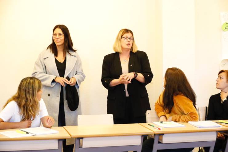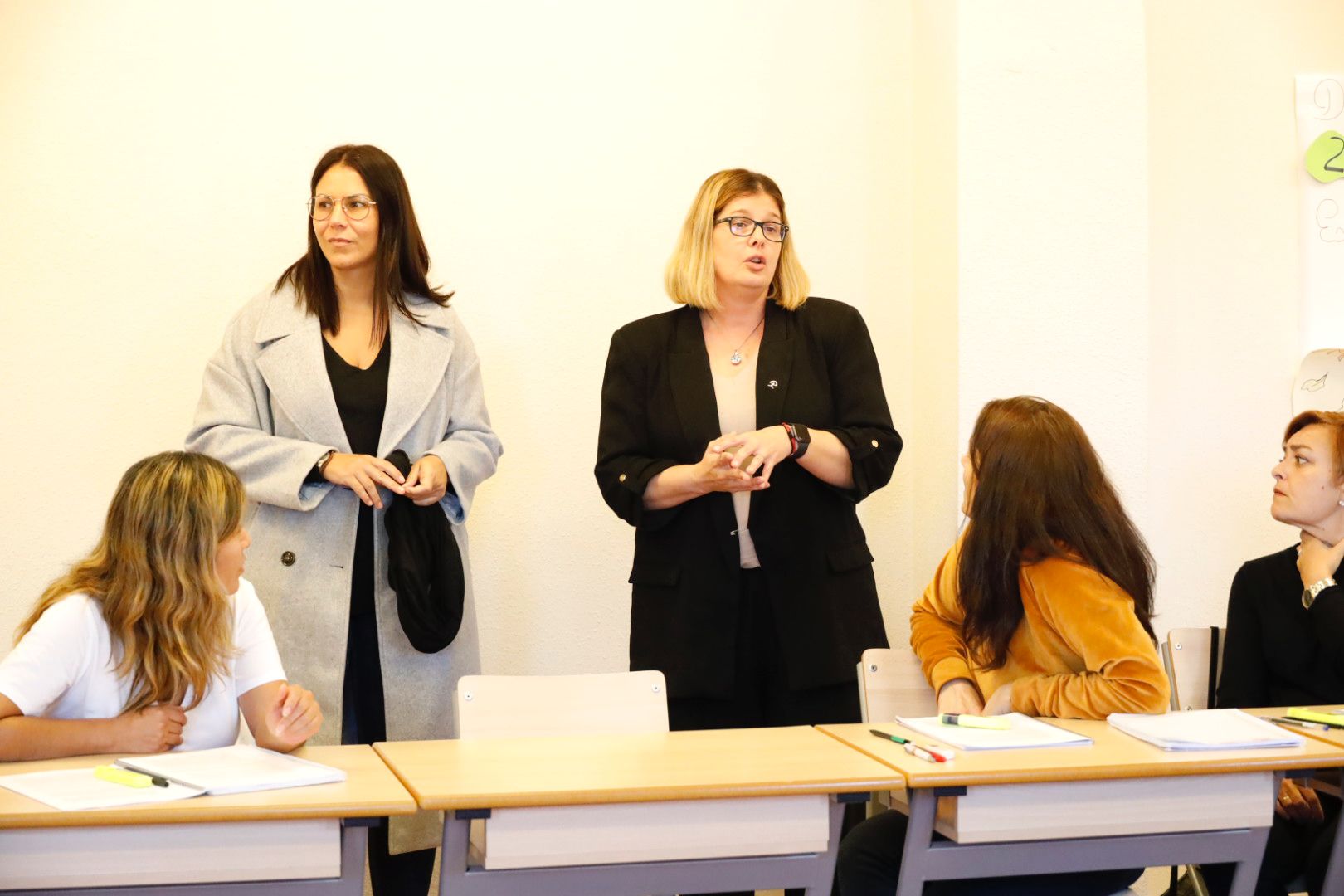 La Alcaldesa, Noelia Posse, acompañada por la Concejala de Empleo y Nuevas Tecnologías, Rebeca Prieto, ha visitado hoy uno de los cursos profesionales para cuidadores de personas dependientes que está impartiendo el Gobierno de Móstoles, formado por PSOE y Podemos, a través de Móstoles Desarrollo, para formar a personal para trabajar en los nuevos centros asistenciales que el Ejecutivo Local está licitando. Las cuatro residencias proyectadas supondrán la creación de 500 empleos directos.