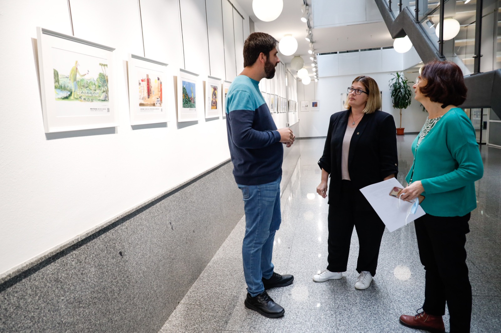 La Alcaldesa de Móstoles, Noelia Posse, acompañada del Concejal de Seguridad, Convivencia, Cultura y Transición Ecológica, Álex Martín, ha visitado hoy la exposición "Ilustrando a Lola Núñez y Rocío Antón".