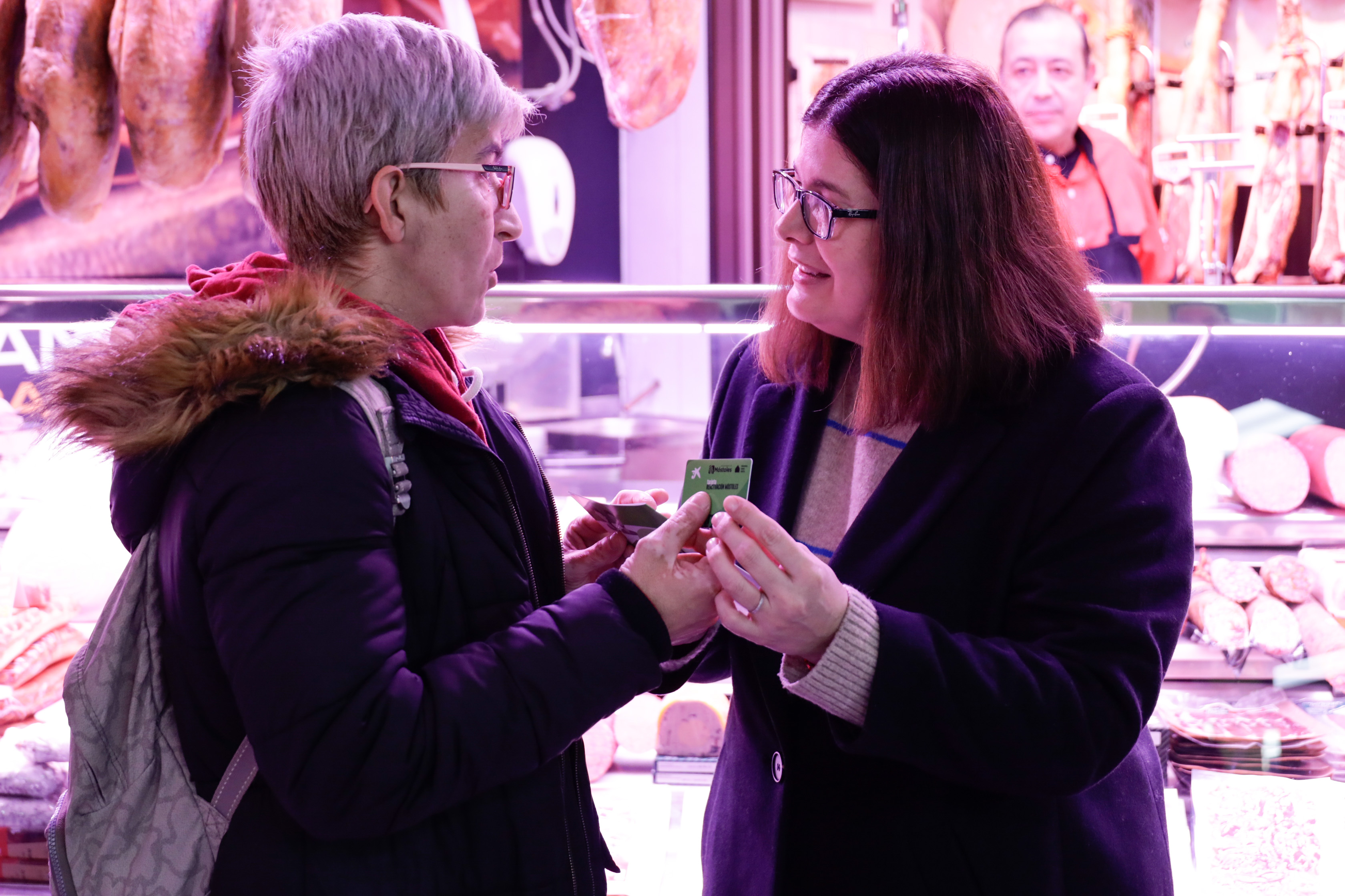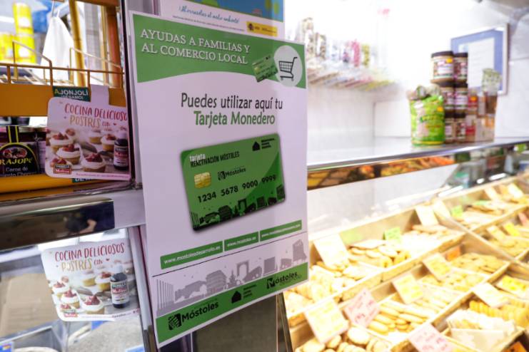 - Durante la visita, la Alcaldesa ha hecho entrega de varias tarjetas monedero a vecinas y vecinos beneficiarios de esta campaña de ayuda a las familias y al comercio local a la que el Gobierno de Móstoles ha destinado 3,3 millones de euros desde 2021.
