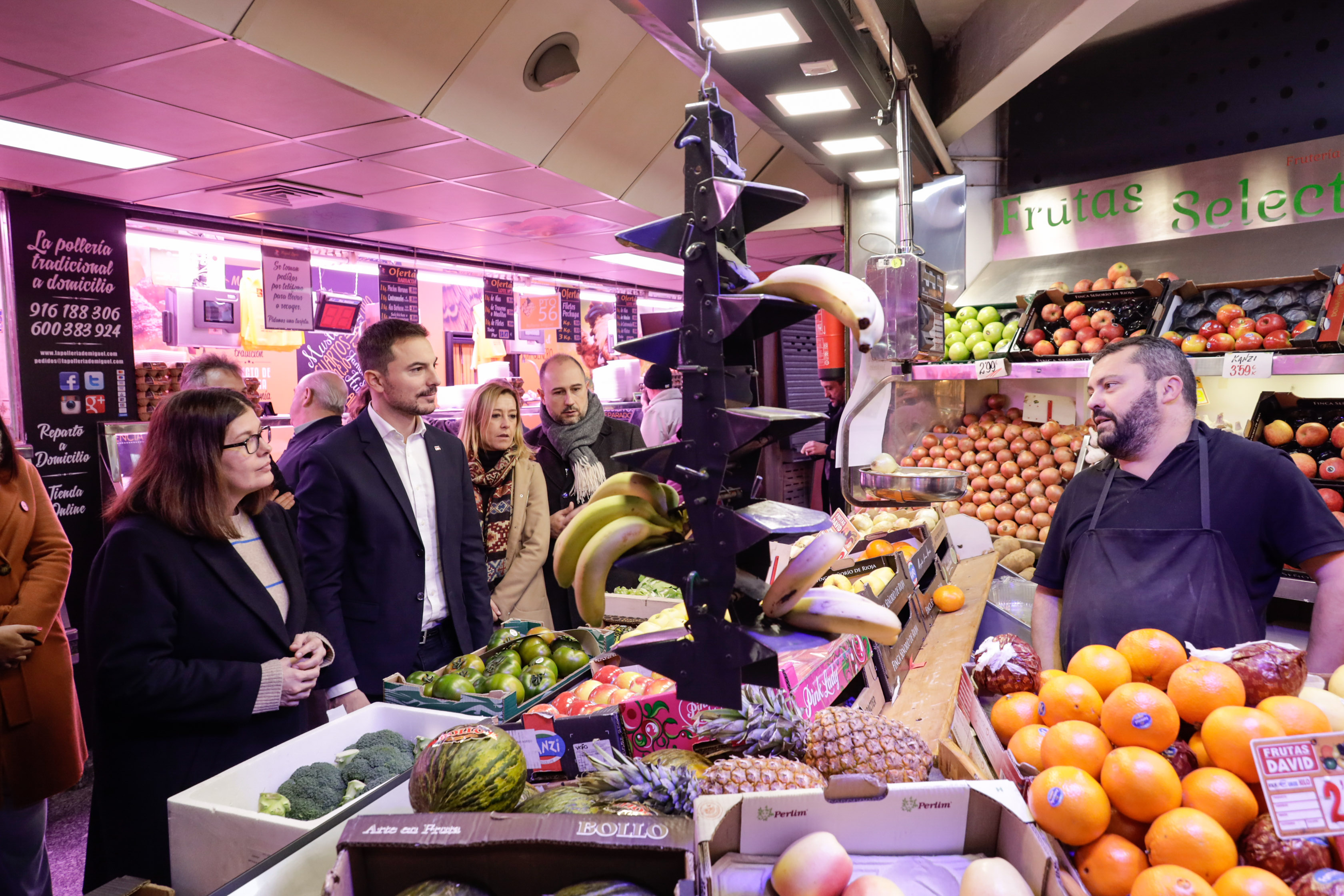 En una muestra más de apoyo a los establecimientos de barrio y al comercio de proximidad, la Alcaldesa, Noelia Posse, ha visitado hoy el Mercado de la Constitución, uno de los más emblemáticos de la ciudad y el más antiguo, con 50 años de historia. Lo ha hecho acompañada de su Presidente, Juan Pedro Minaya, la Presidenta de la Federación de Comerciantes, Chelo García Parra, el diputado de la Asamblea de Madrid y Portavoz del PSOE en la cámara regional, Juan Lobato, la Concejala de Empleo y Nuevas Tecnologías, Rebeca Prieto, y el Concejal de Seguridad, Convivencia, Cultura y Transición Ecológica, Álex Martín.