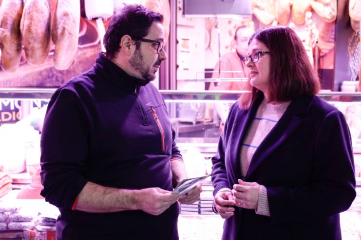 La Alcaldesa visita el Mercado de la Constitución, dentro de su campaña de apoyo al comercio local
