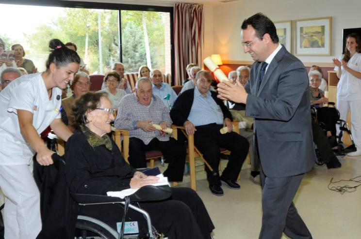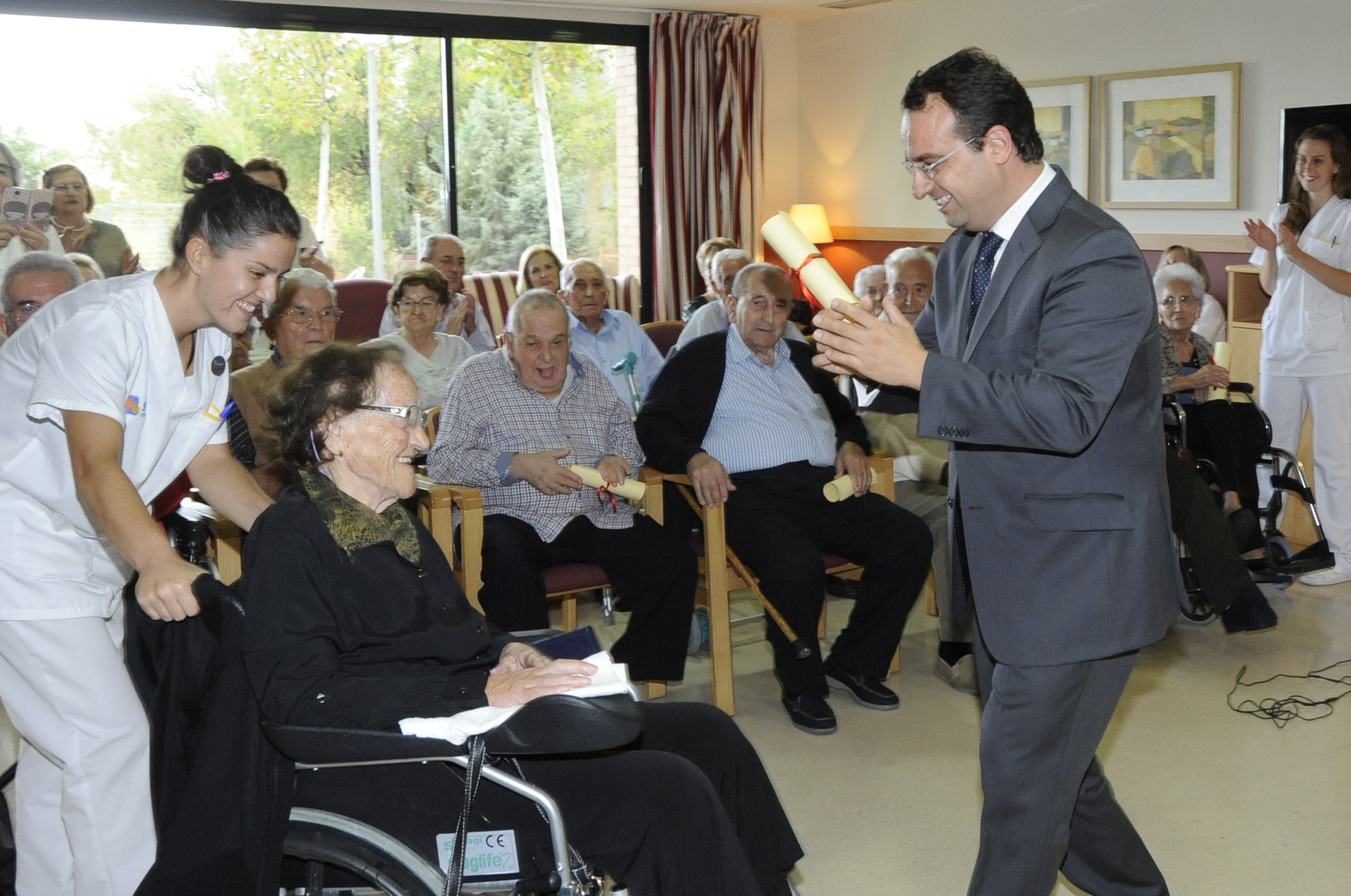 Alcaldía: El Alcalde entrega diplomas a los mayores más activos de la Residencia SARquavitae Ciudad de Móstoles.