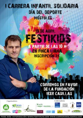El Alcalde de Móstoles, Daniel Ortiz, ha dado a conocer que el próximo 19 de abril, Día del Deporte, tendrá lugar en el parque Finca Liana de la ciudad, la popular carrera de colores FestiKids, organizada por la Concejalía de Deportes y Juventud. El precio de la inscripción, cuyo plazo ya está abierto, será de 3 €, que se donará íntegramente a la Fundación Iker Casillas en proyectos de educación infantil.