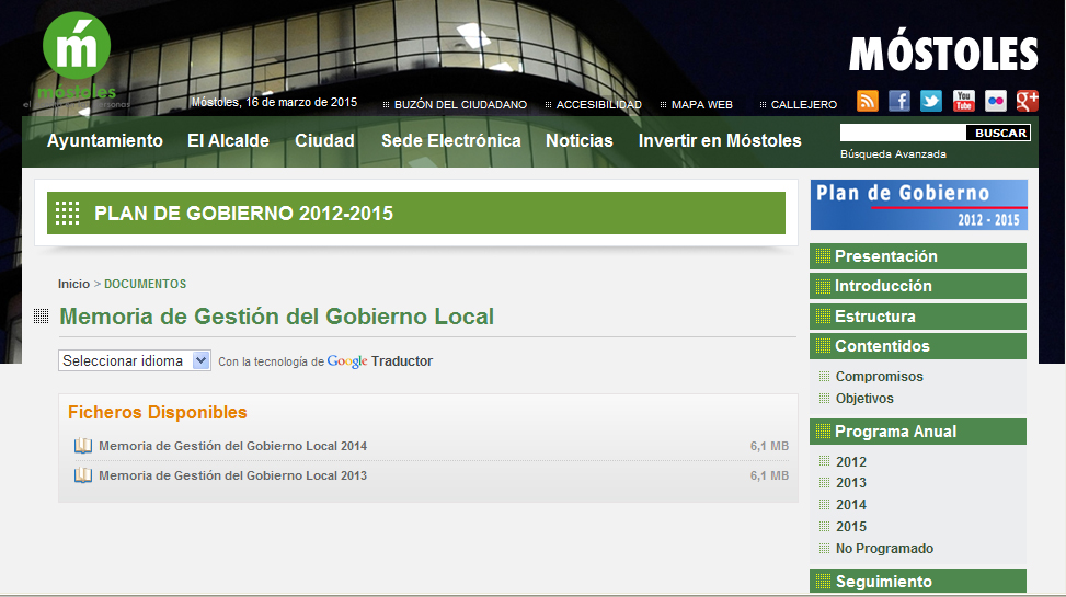 "Este documento está repleto de realidades tangibles, cuantificadas, evaluables y comprobables, que, por supuesto los ciudadanos pueden conocer a través de la web": http://www.mostoles.es/PlanGobierno/es/documentos/memoria-gestion-gobierno-local