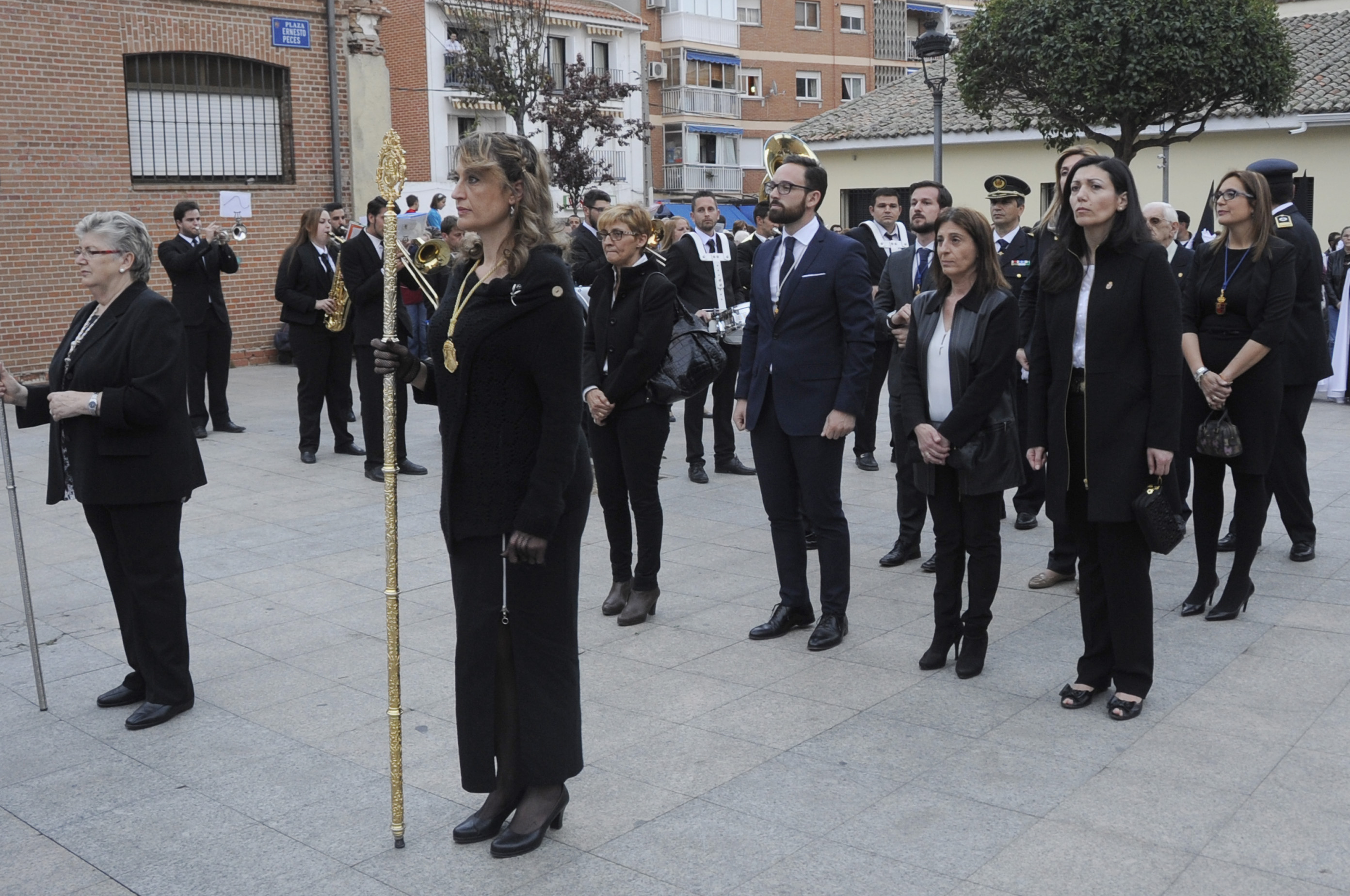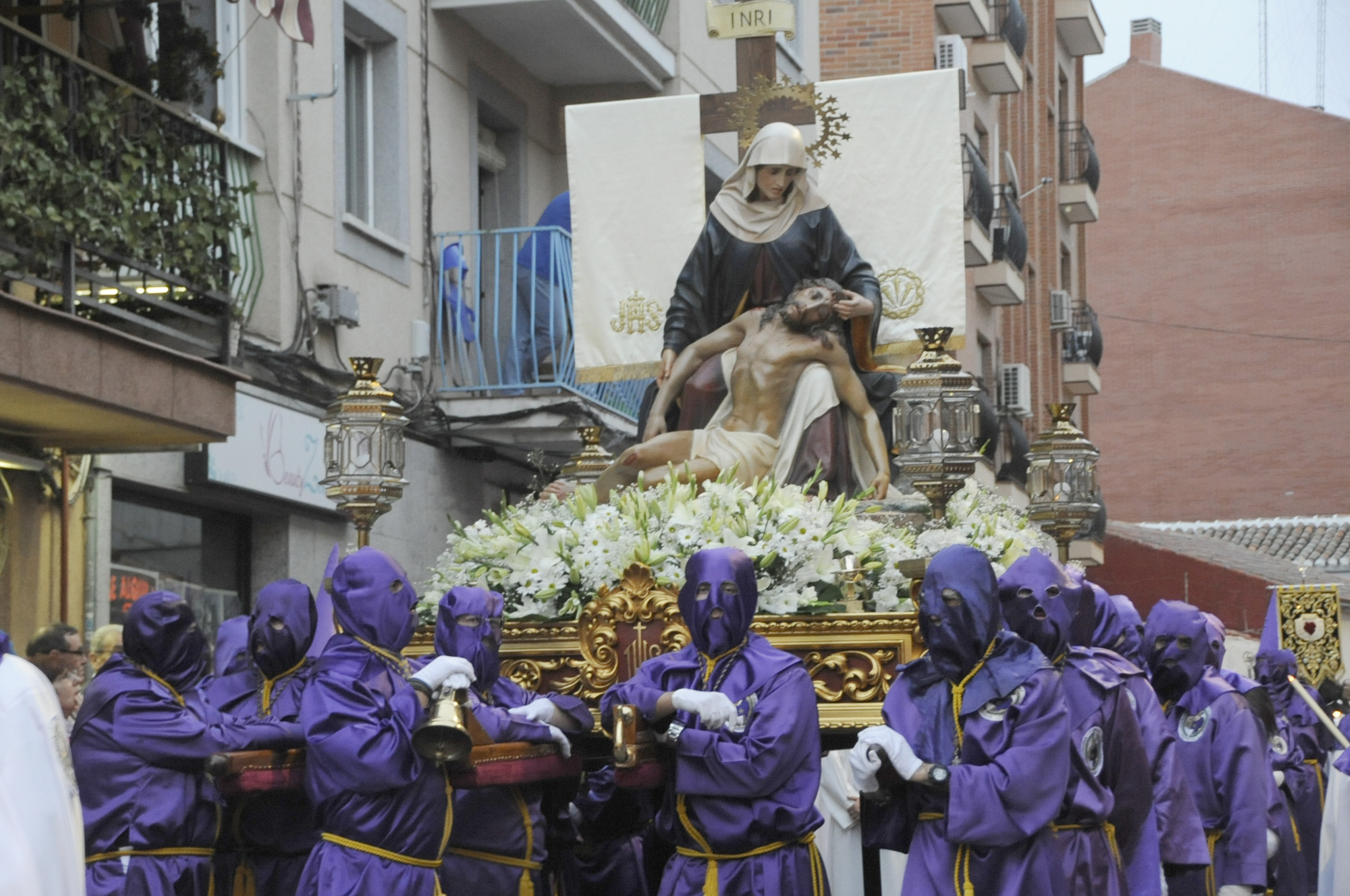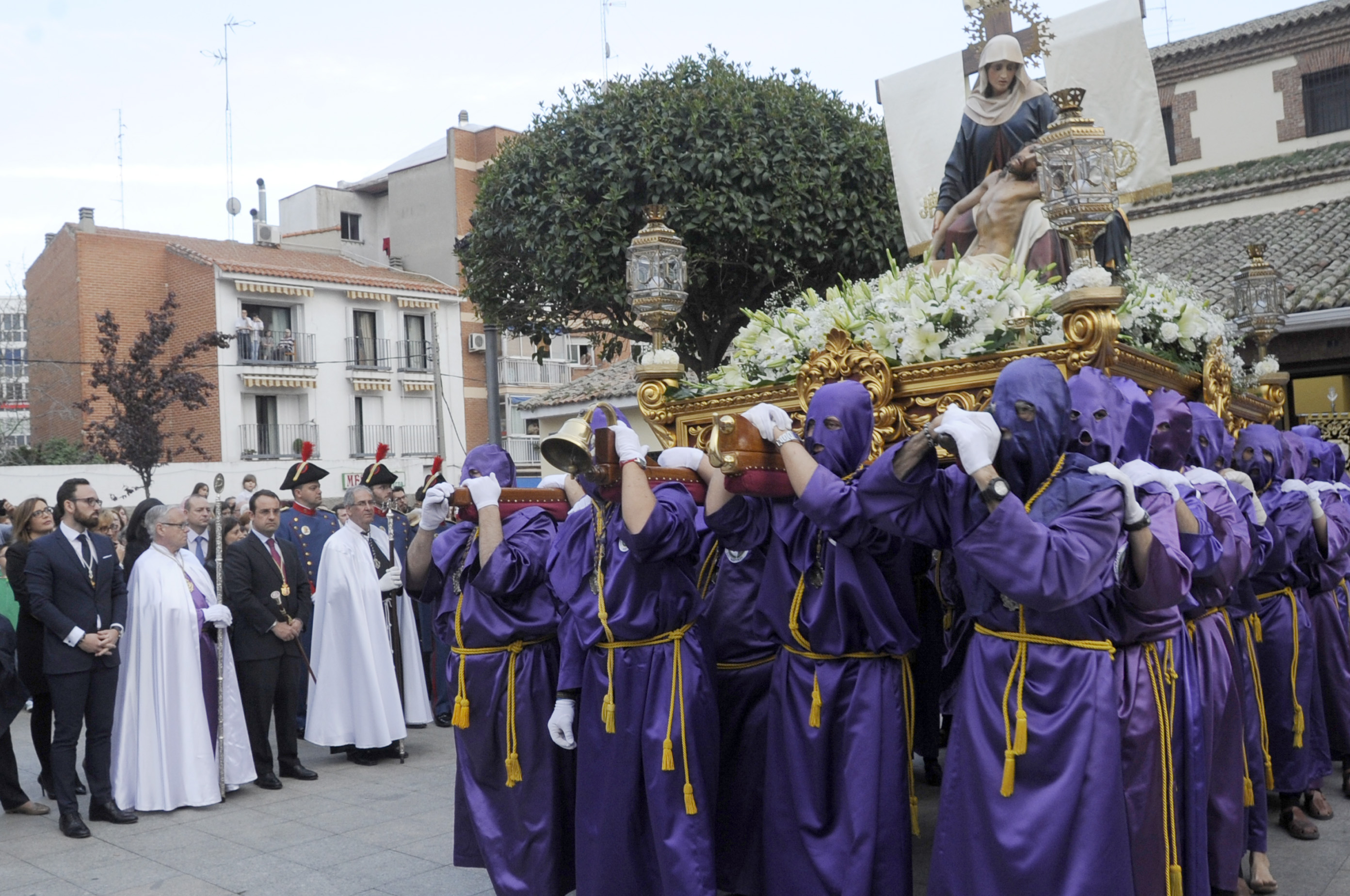 Esta procesión saca a las calles del centro de Móstoles cuatro pasos: el Cristo Crucificado, La Piedad, El Sepulcro y la Virgen de la Soledad, pertenecientes a la Cofradía Jesús Nazareno y Cristo Resucitado, la Parroquia de Nuestra Señora de la Asunción y la Hermandad Nuestra Señora de la Soledad, la más antigua de la ciudad.