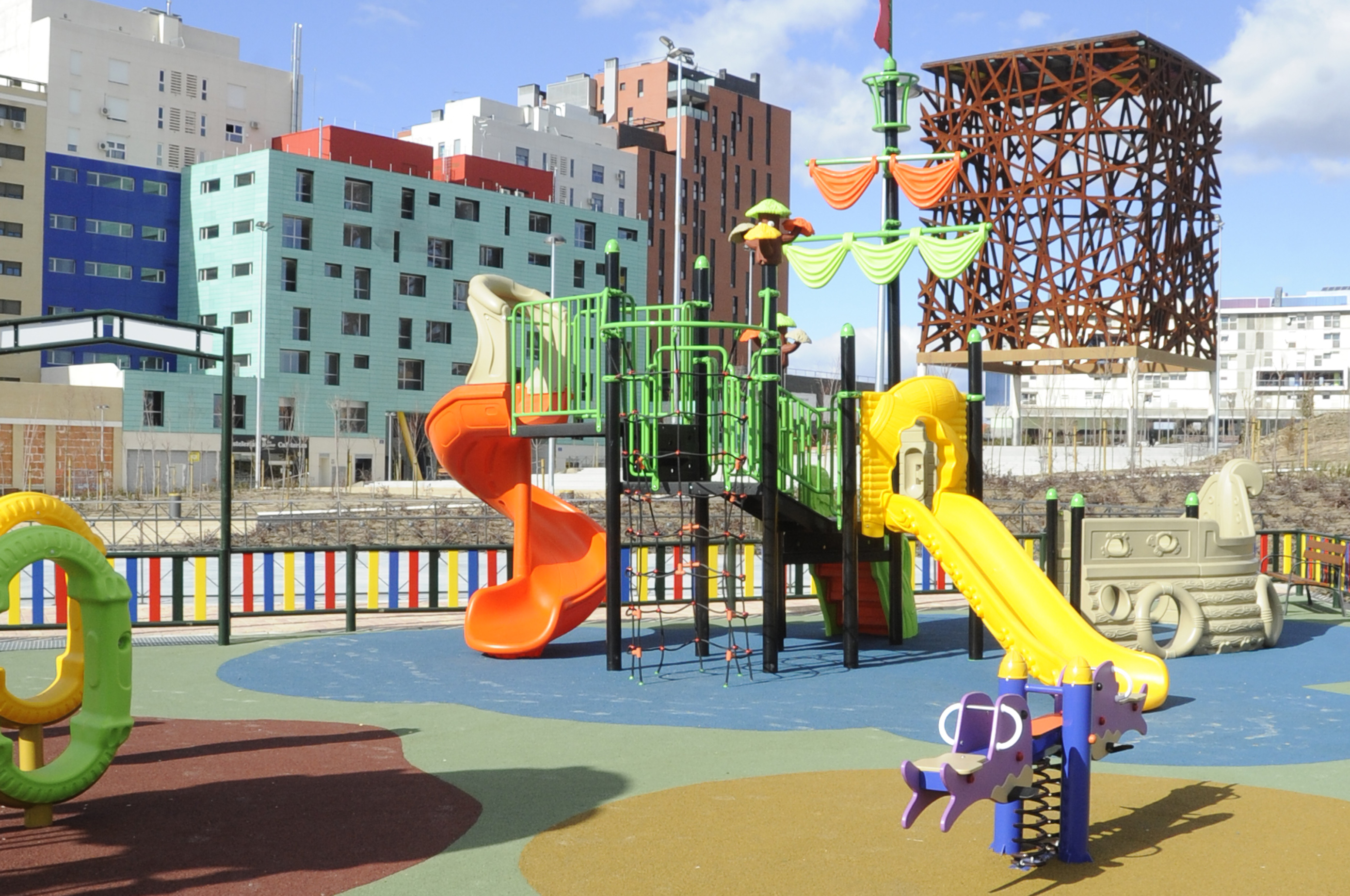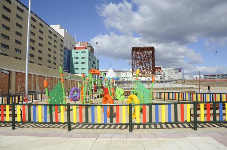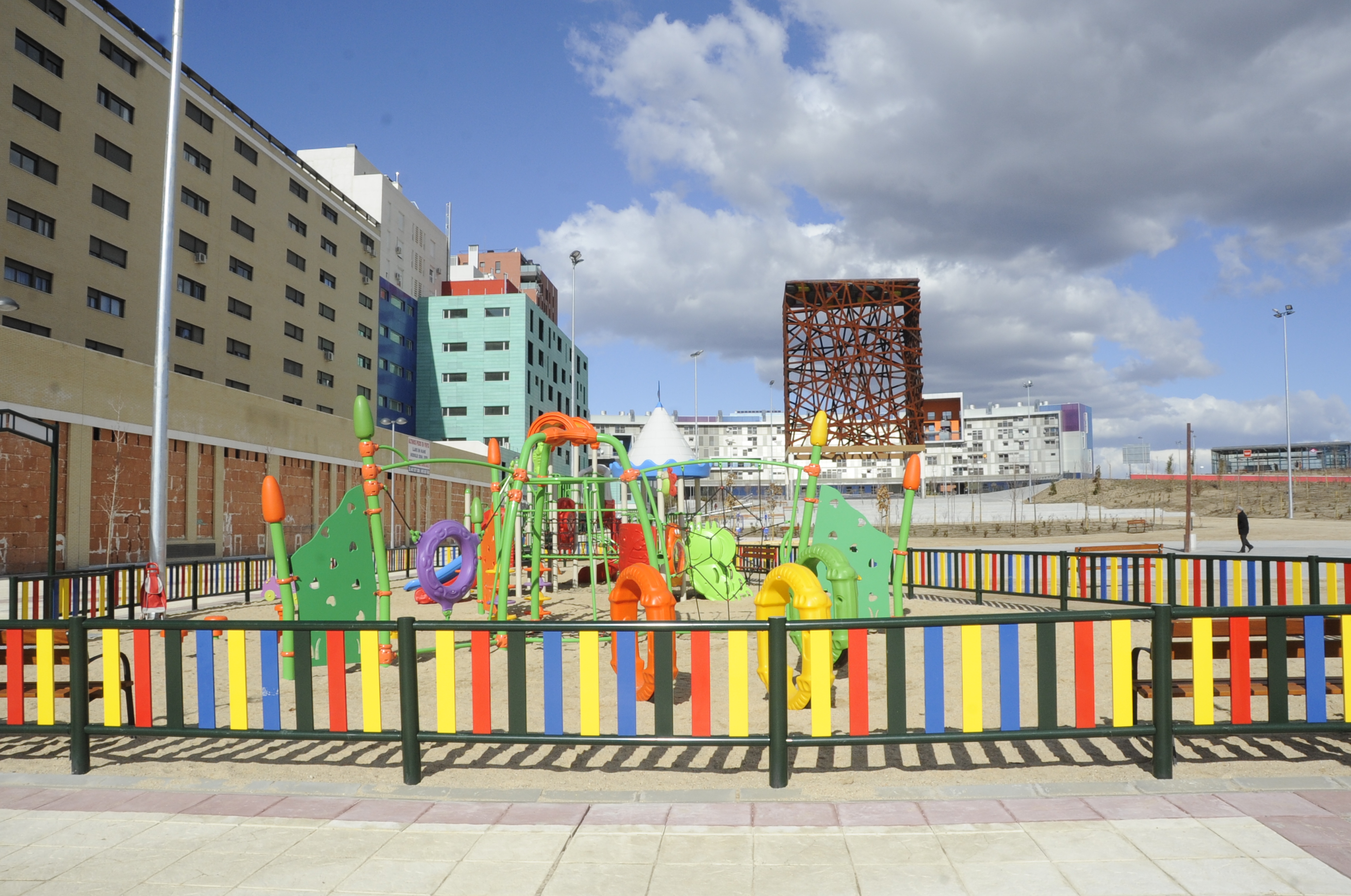 El proyecto ha incluido la creación de un reloj solar, una fuente, áreas estanciales para los vecinos, con espacios de juegos para los mayores y los niños, y 230 plazas de aparcamiento en superficie.