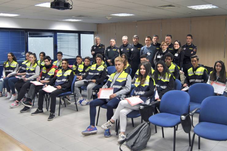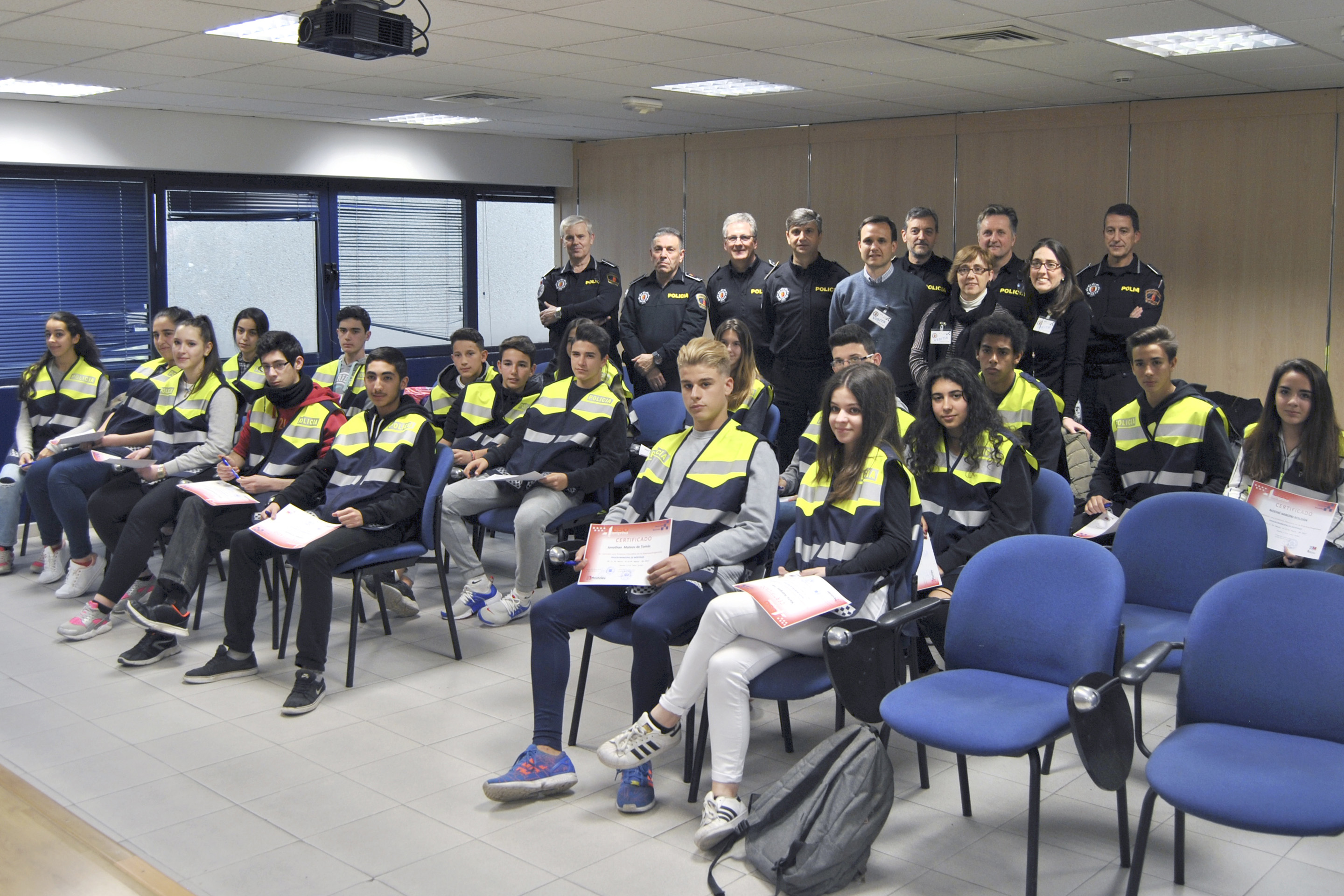 Alumnos que han participado en el proyecto 4ºESO+Empresa en las dependencias de la Policía Municipal reciben sus diplomas