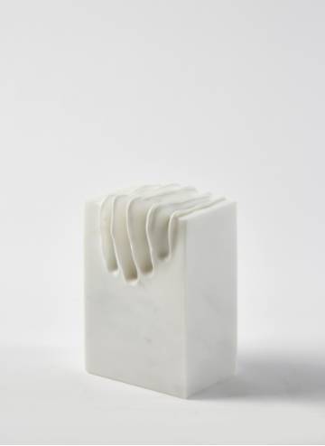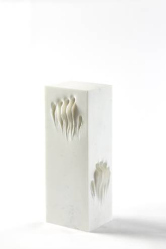 En un trabajo lento, en ocasiones obsesivo, la escultora francesa crea piezas que desafían a la física. La piedra se transforma, como si se derritiera, y la forma final es más parecida a la cera que al mármol. El espectador se ata a las obras instintivamente, atracado por la materialidad y dulzura de las piezas y de la sensualidad que emerge de esta dualidad.